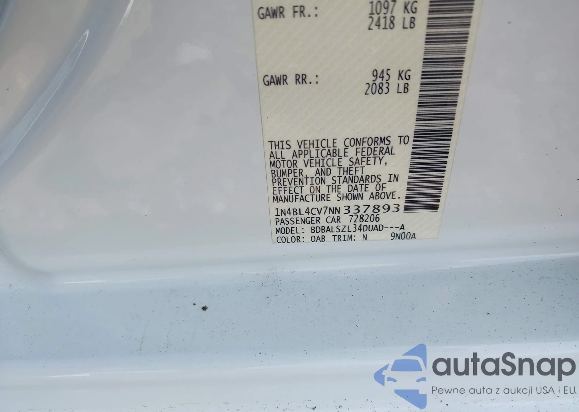 • VIN 1N4BL4CV7NN337893