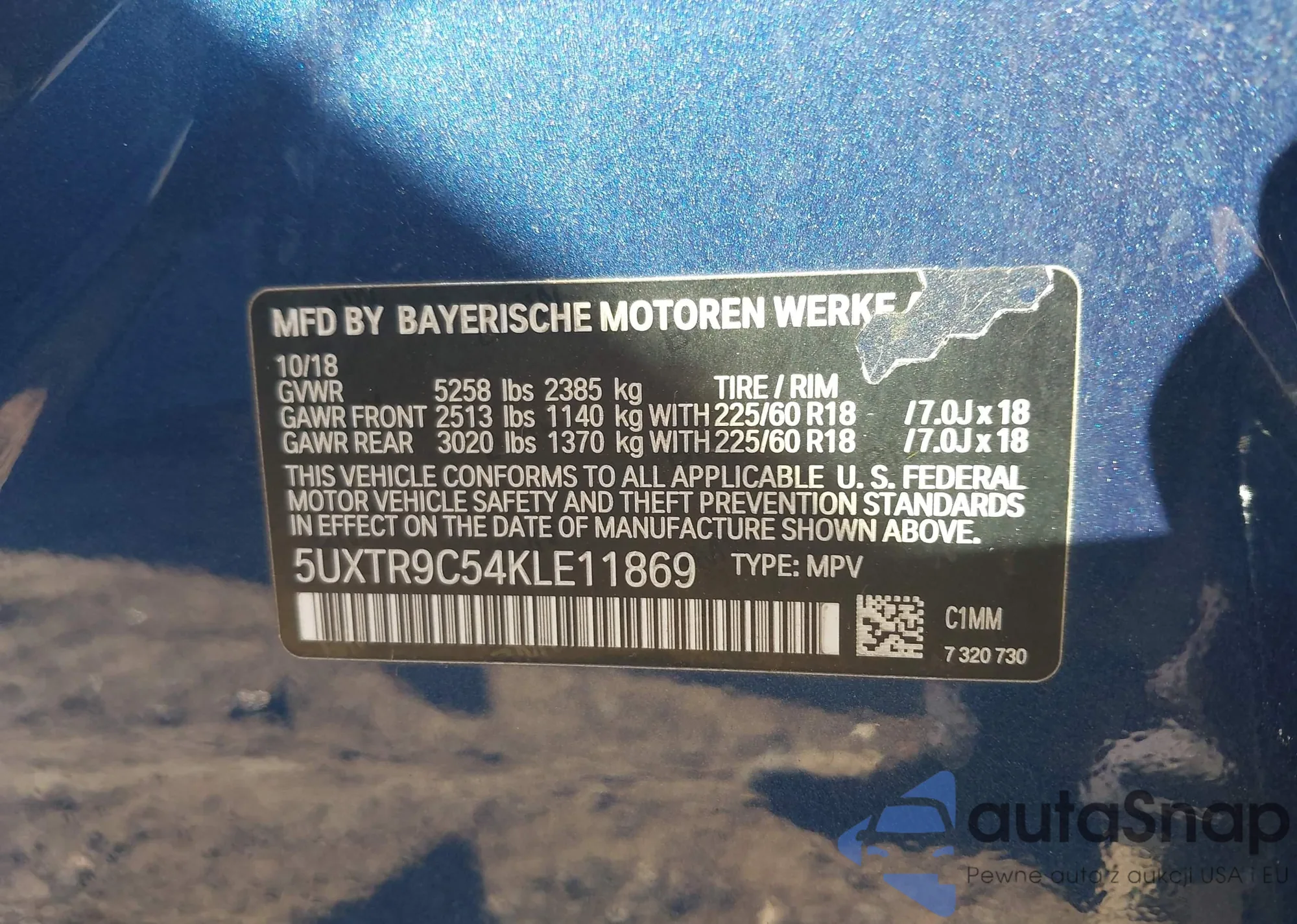 • VIN 5UXTR9C54KLE11869