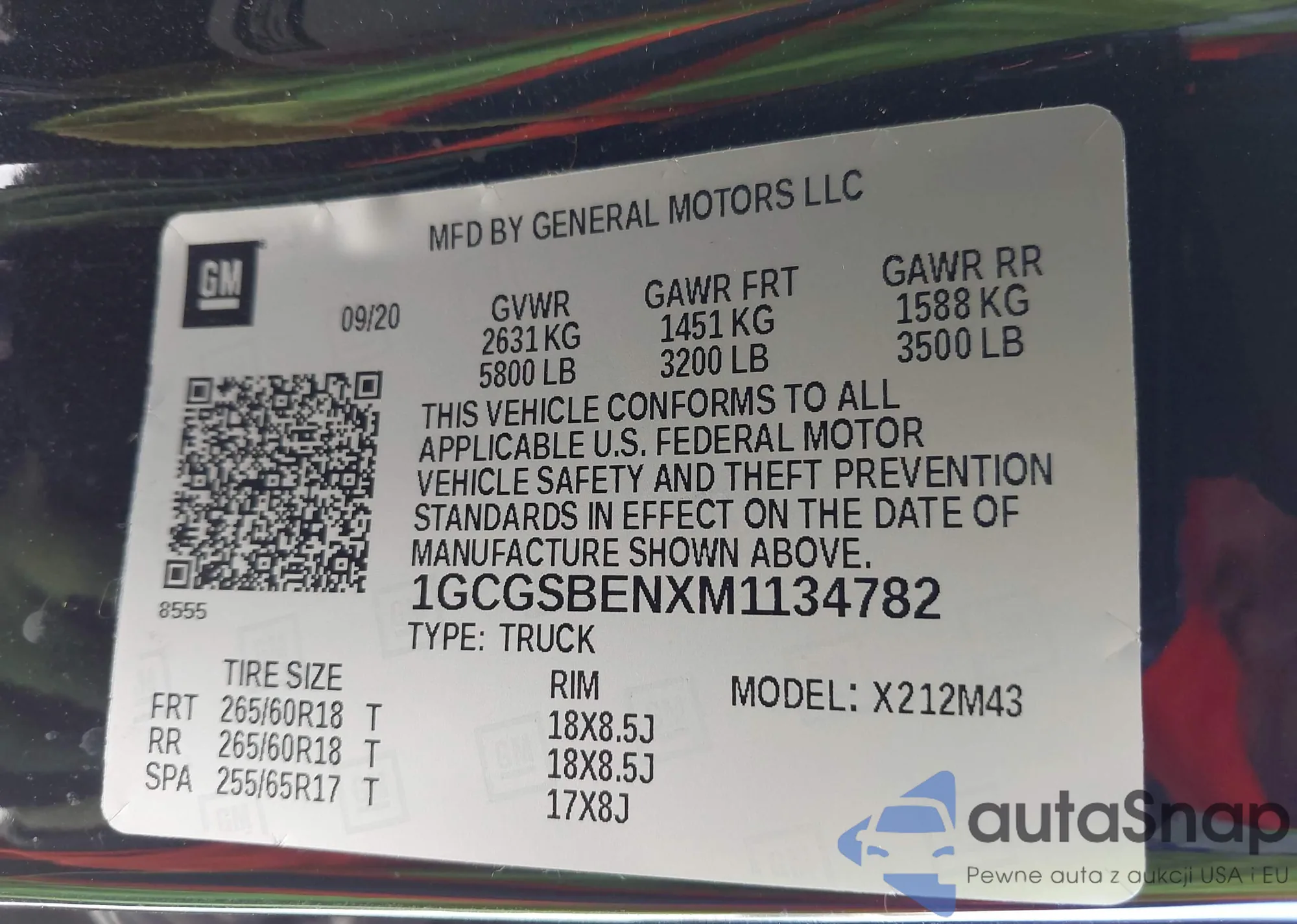LOT: 43114788 VIN: 1GCGSBENXM1134782