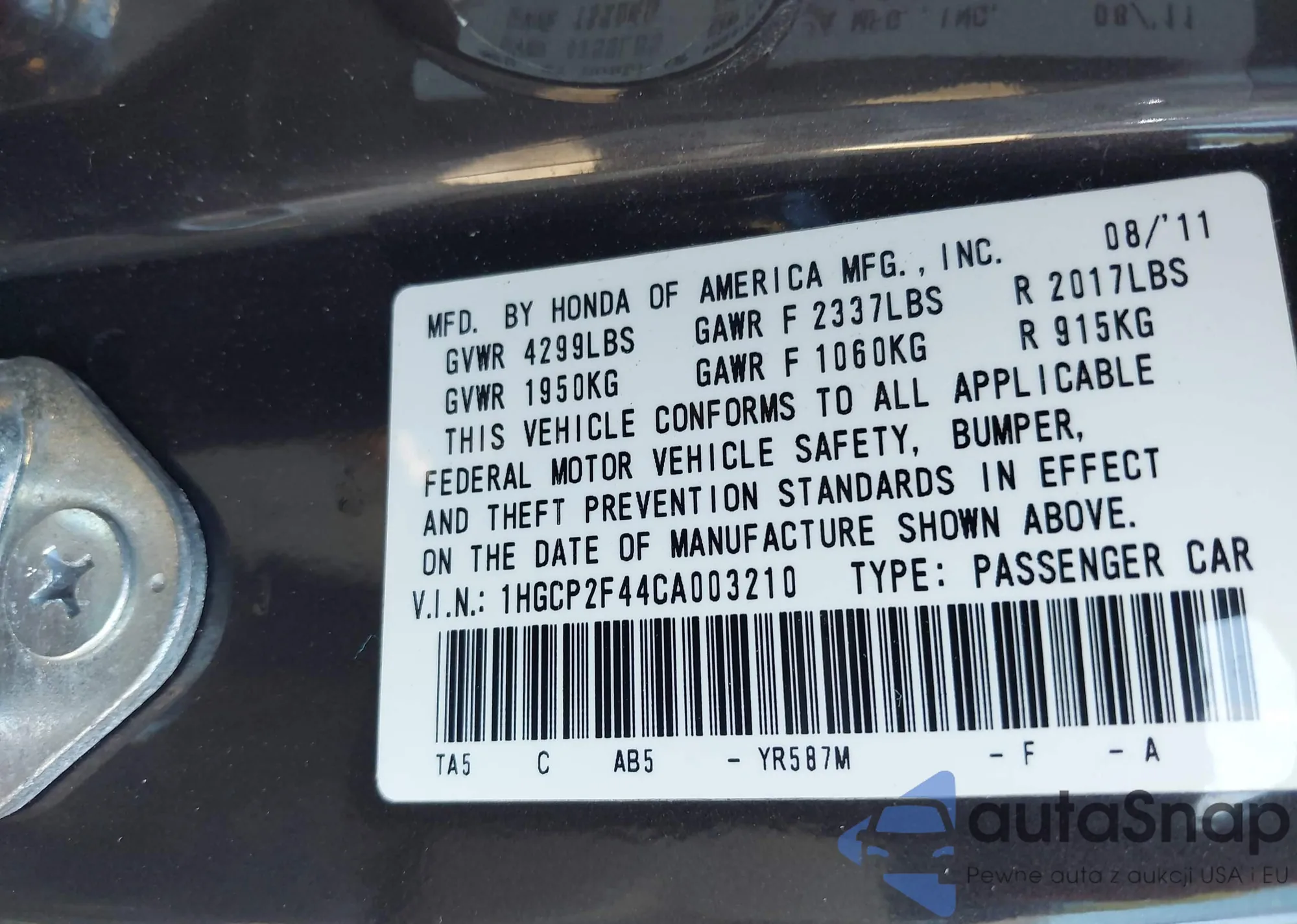 LOT: 43192173 VIN: 1HGCP2F44CA003210
