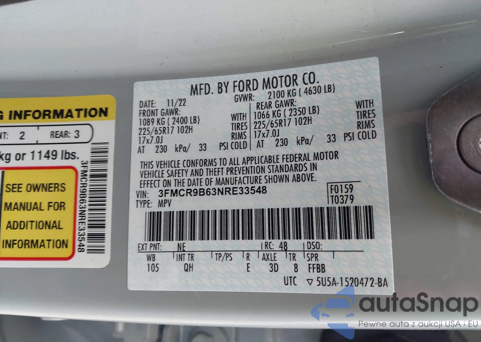 • VIN 3FMCR9B63NRE33548