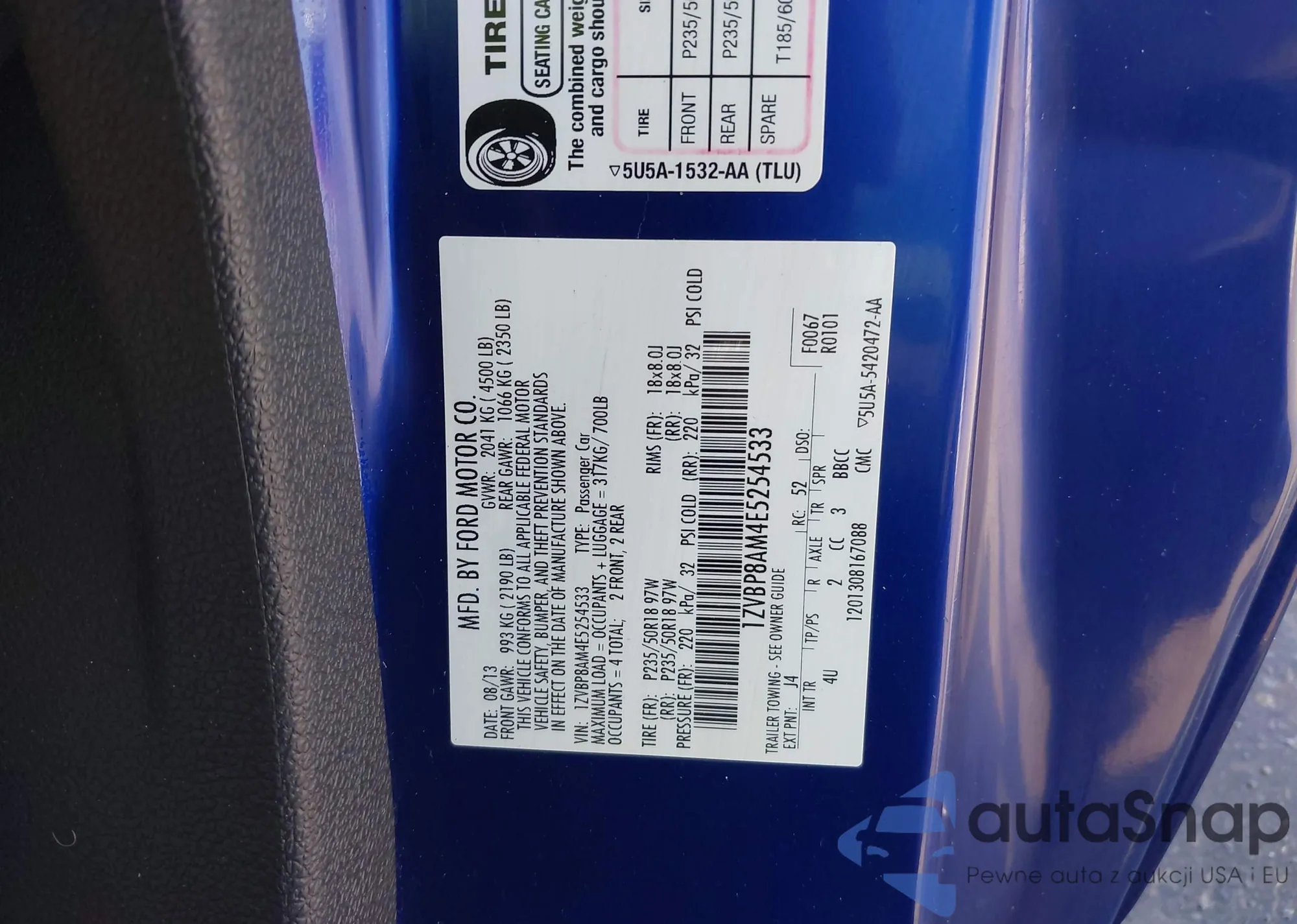 • VIN 1ZVBP8AM4E5254533
