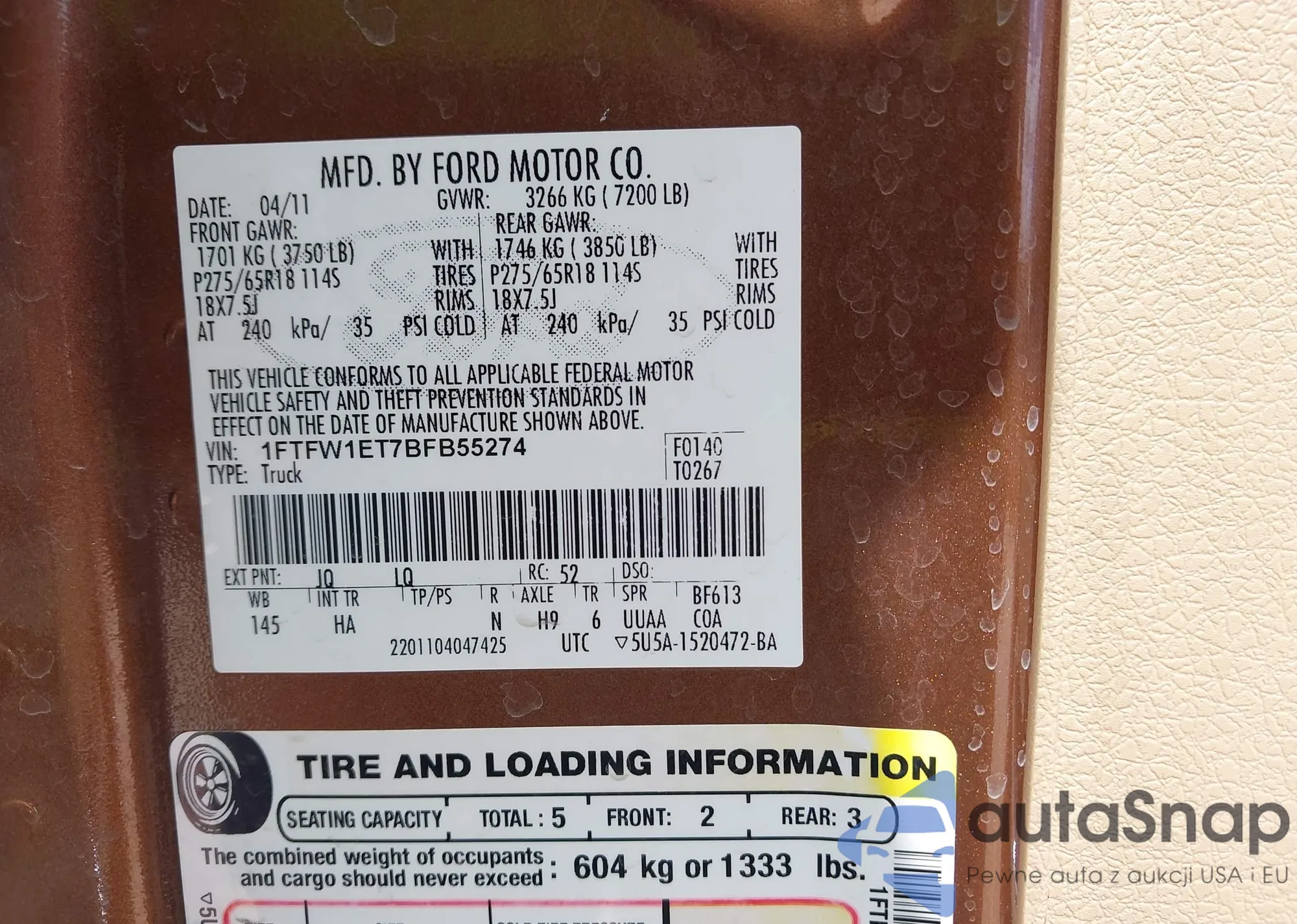 • VIN 1FTFW1EFXFKE18655