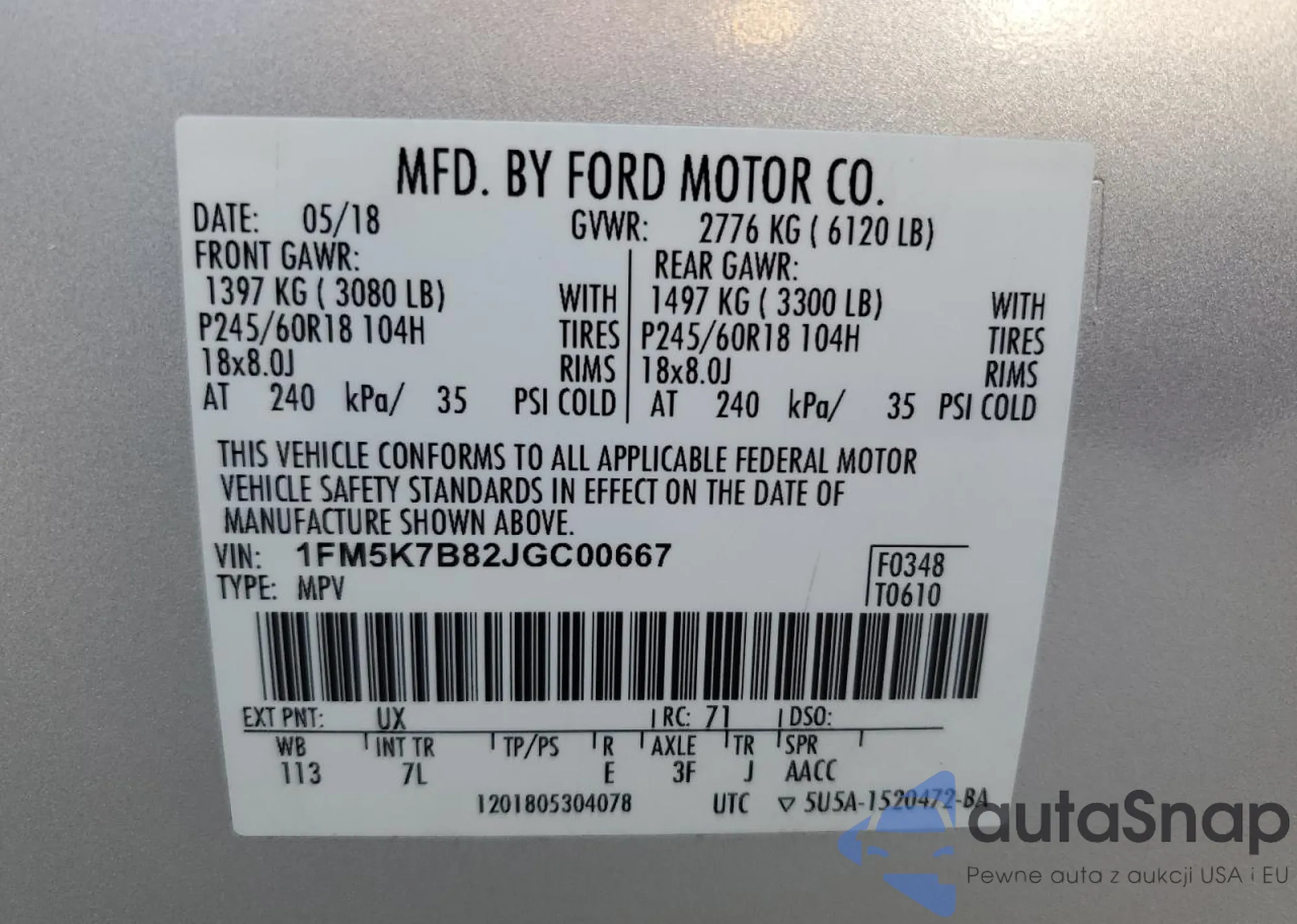 • VIN 1FM5K7B82JGC00667