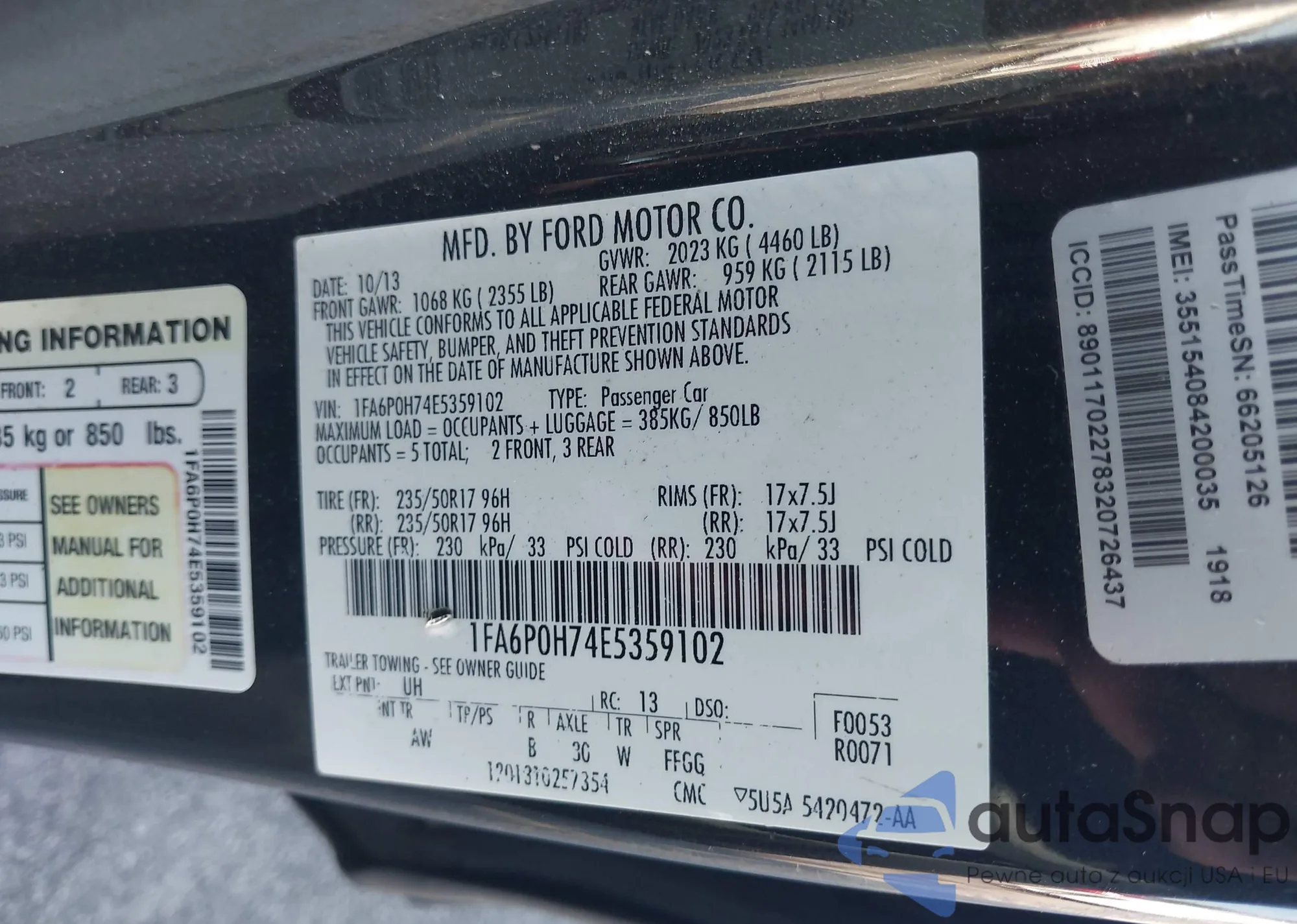 • VIN 1FA6P0H74E5359102