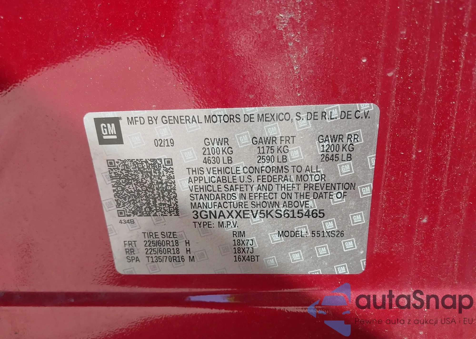 • VIN 3GNAXXEV5KS615465