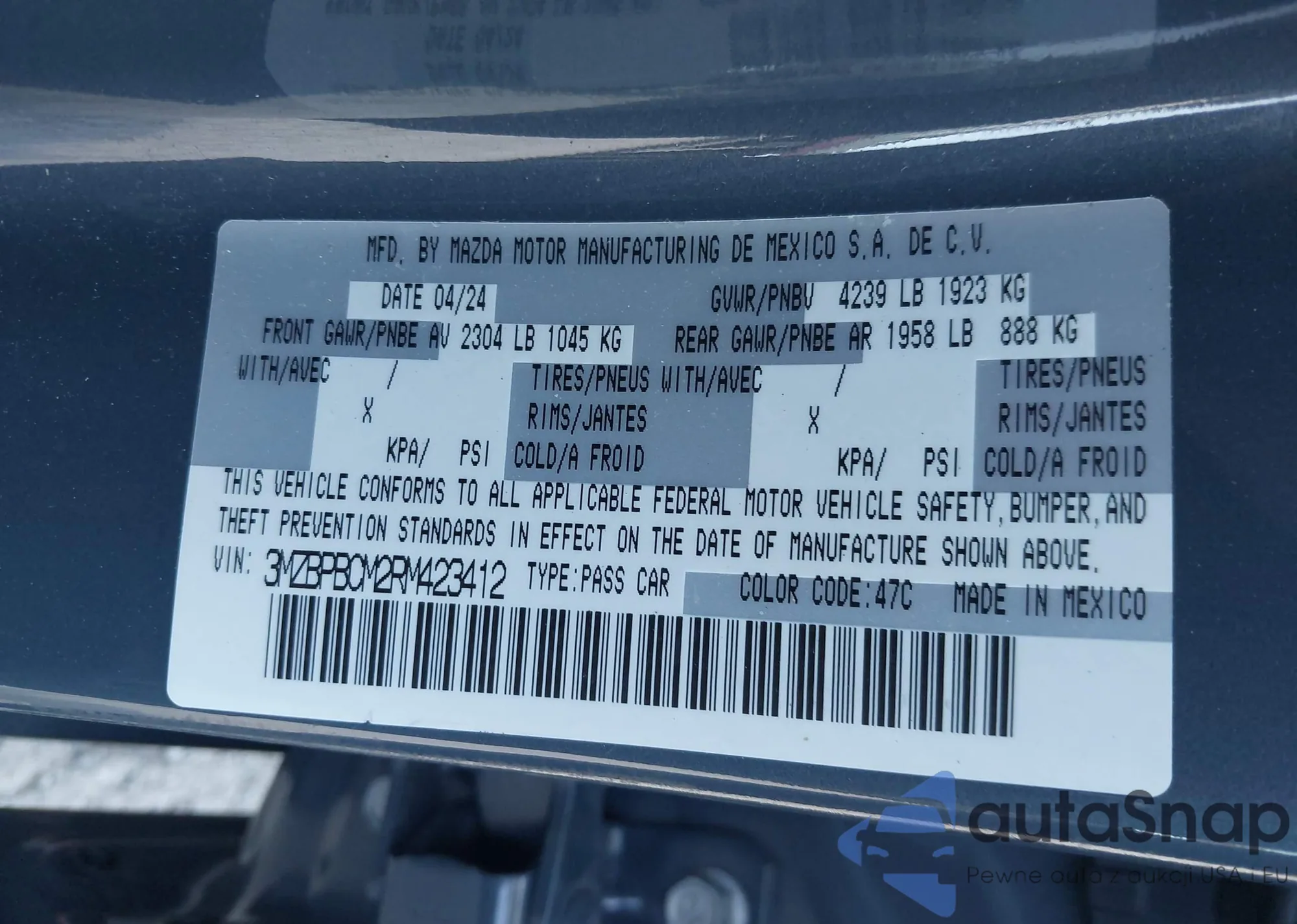 LOT: 43122453 VIN: 3MZBPBCM2RM423412