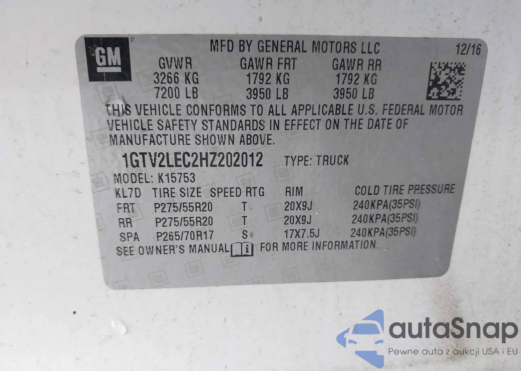 • VIN 1GTV2LEC2HZ202012