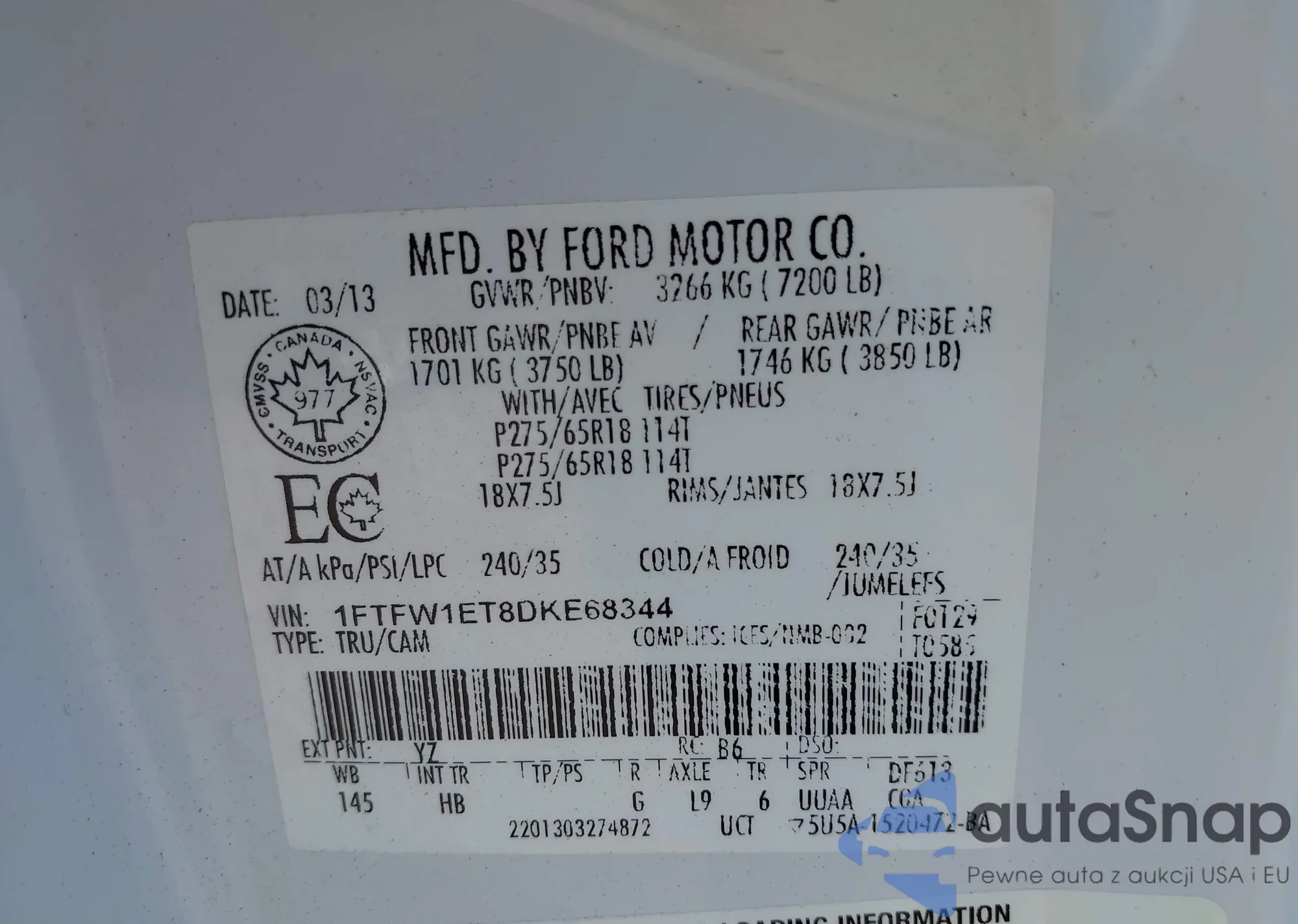 • VIN 1FTFW1ET8DKE68344