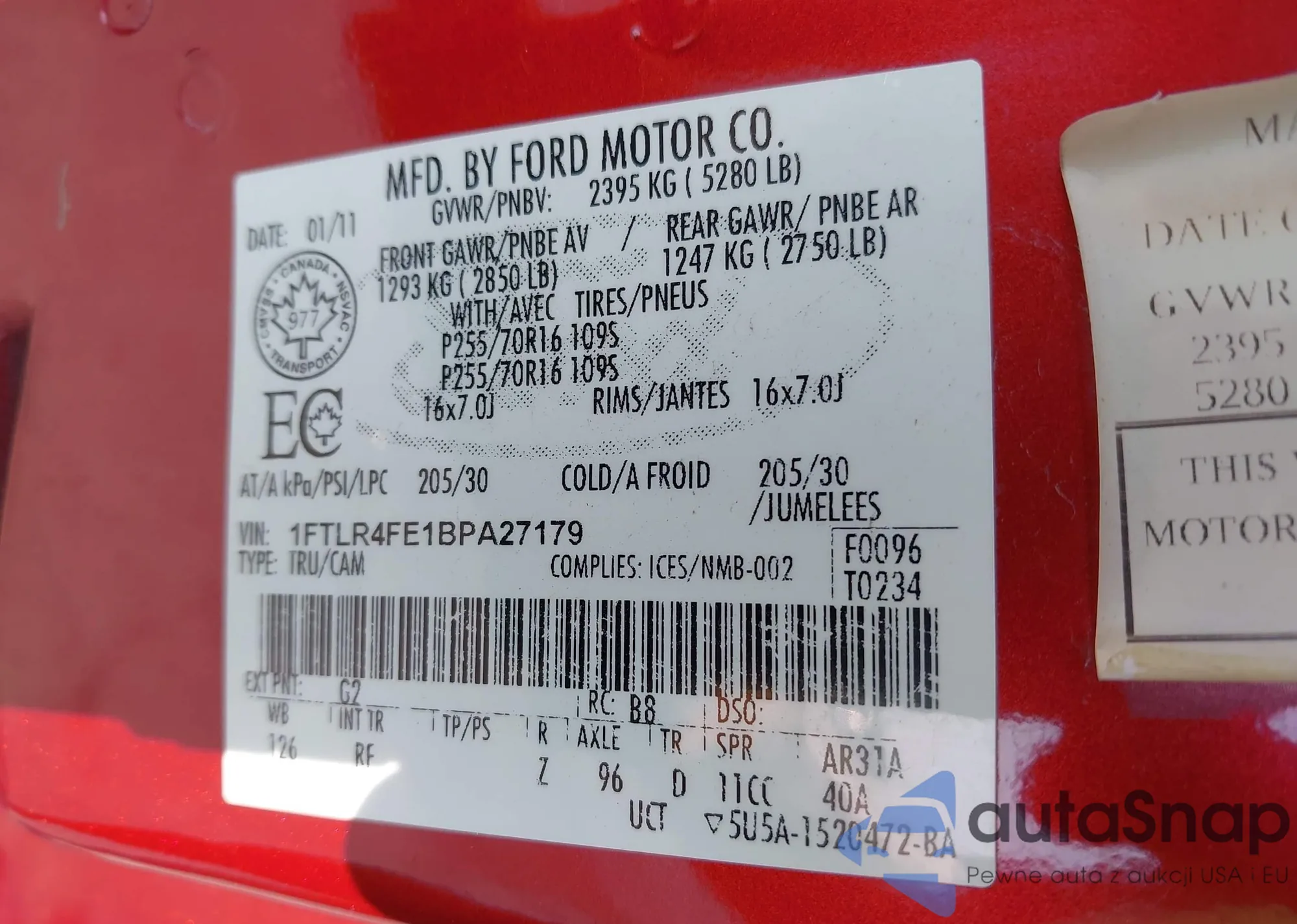 • VIN 1FTFW1ET2BFB06953