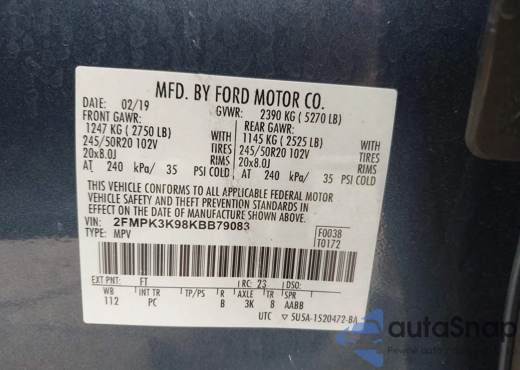 • VIN 3FA6P0HD5GR242439