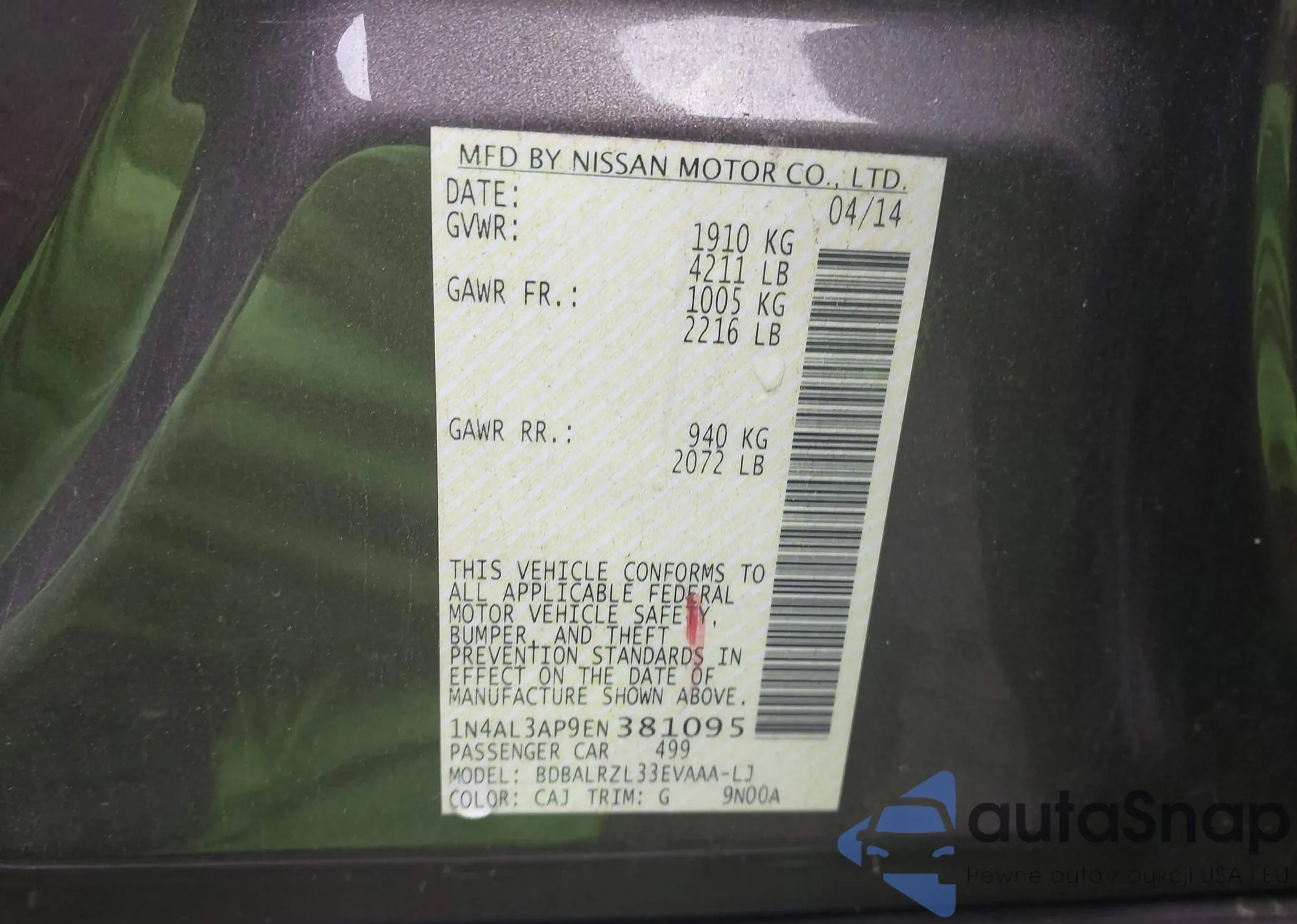 • VIN 1N4AL3AP9EN381095
