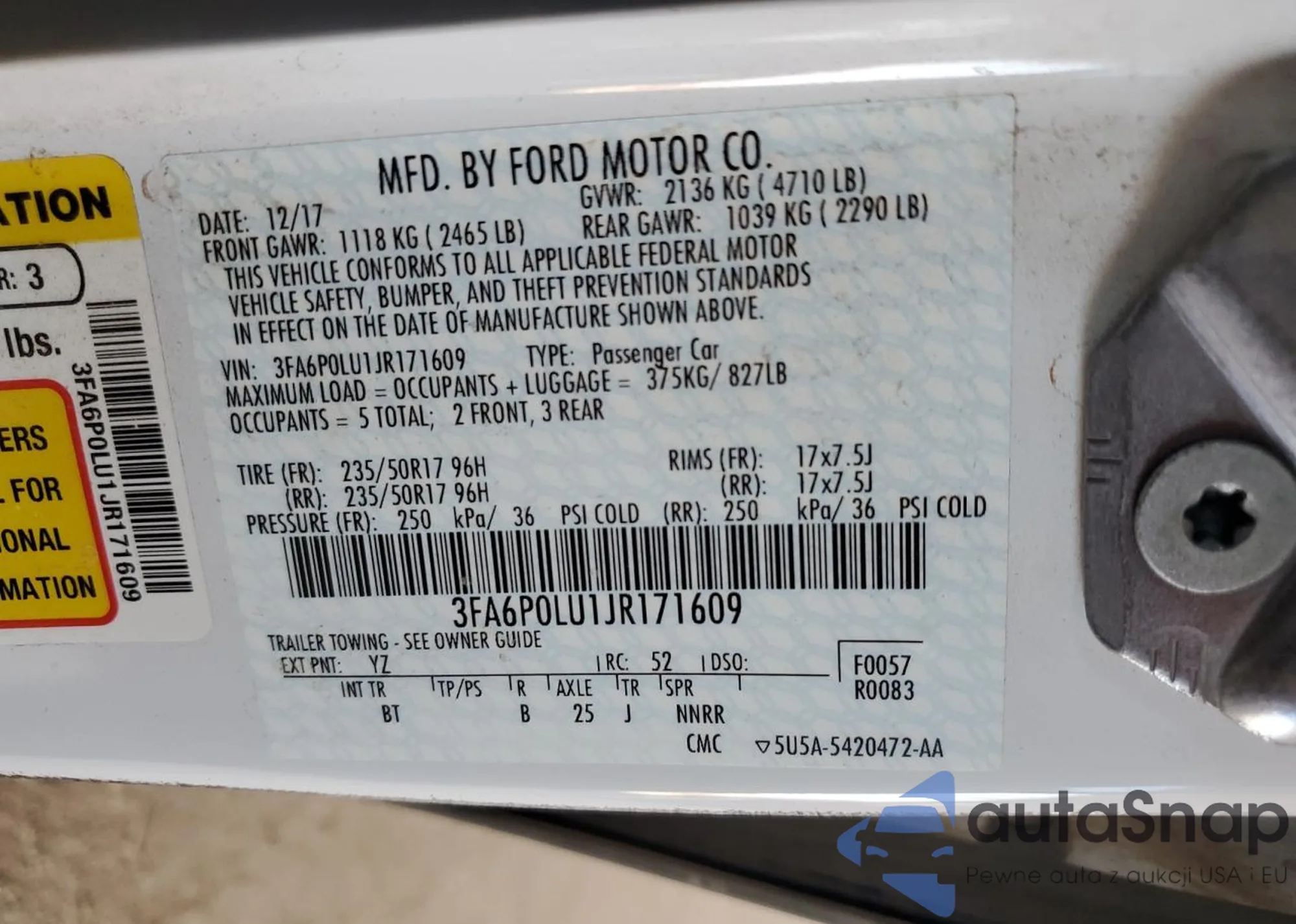 • VIN 3FA6P0LU1JR171609