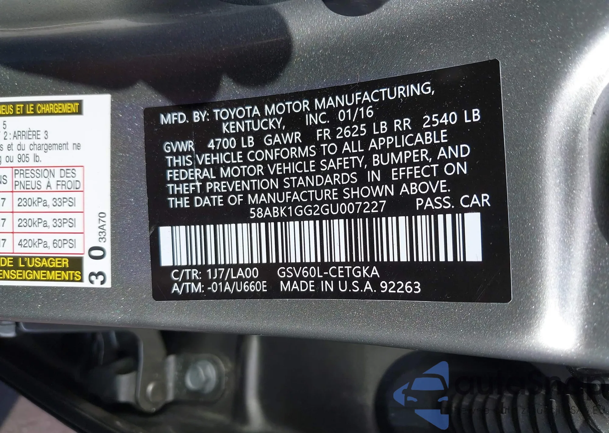 • VIN 58ABK1GG2GU007227