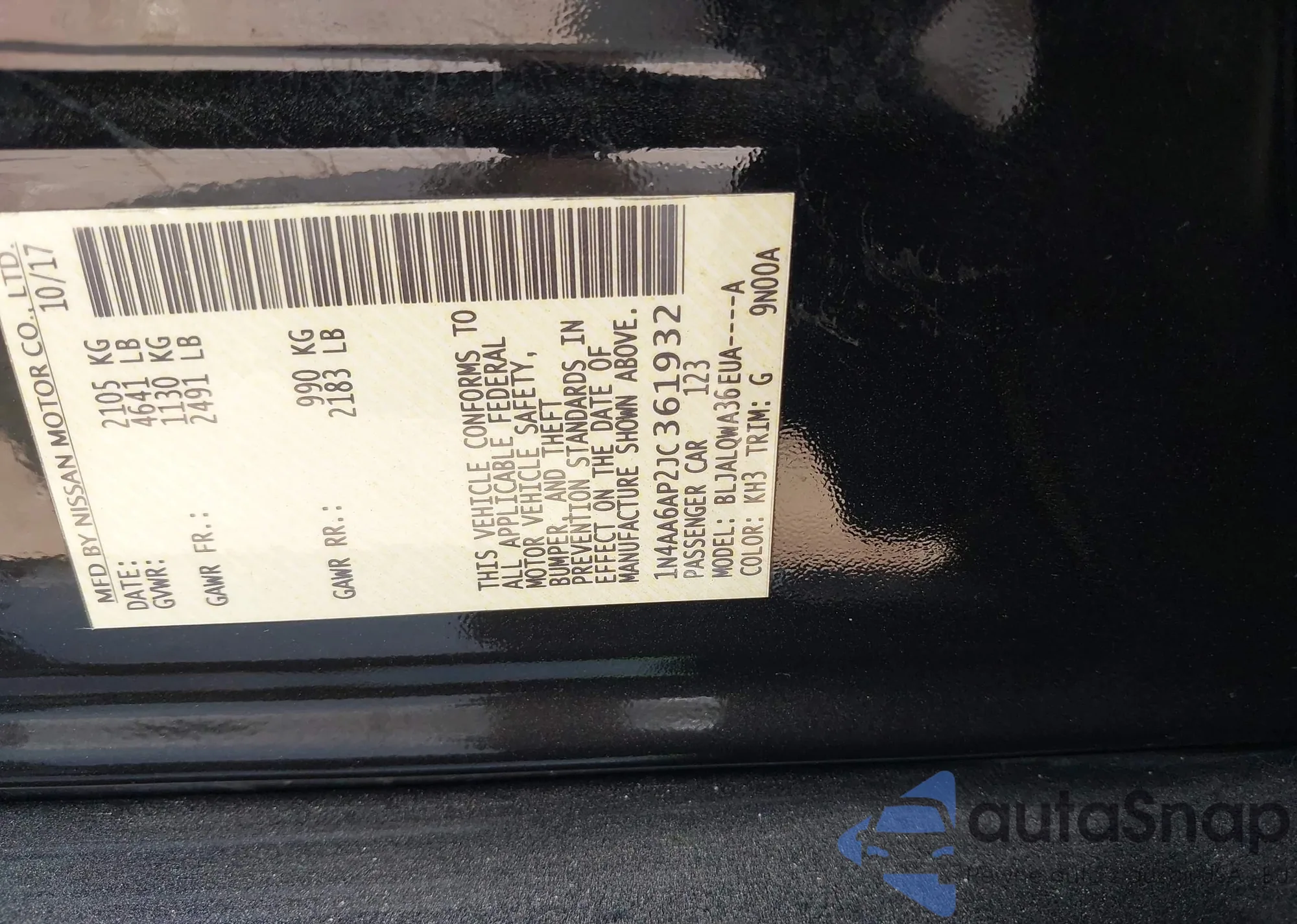 • VIN 1N4AA6AP2JC361932