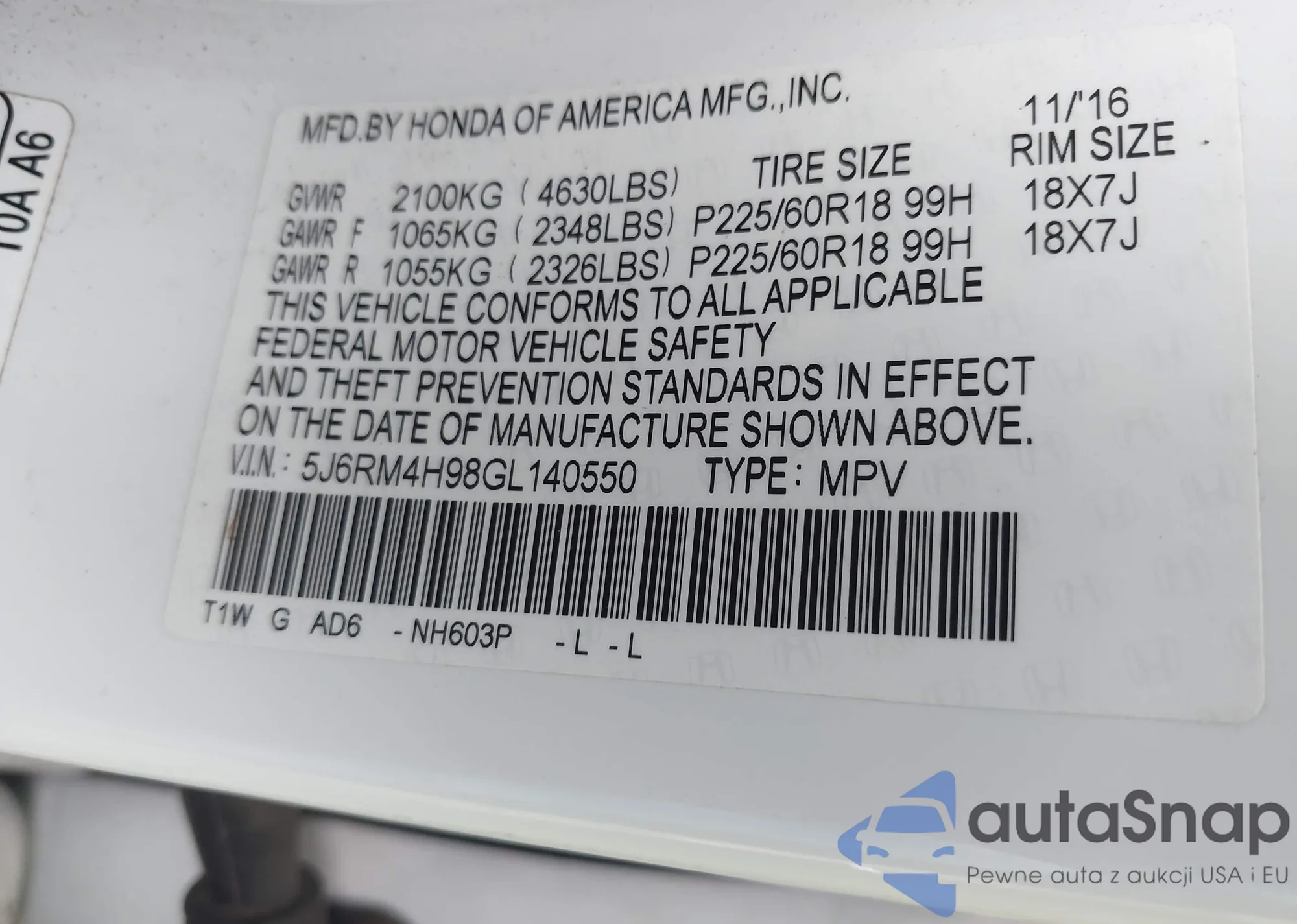• VIN 5FNRL6H53NB005686