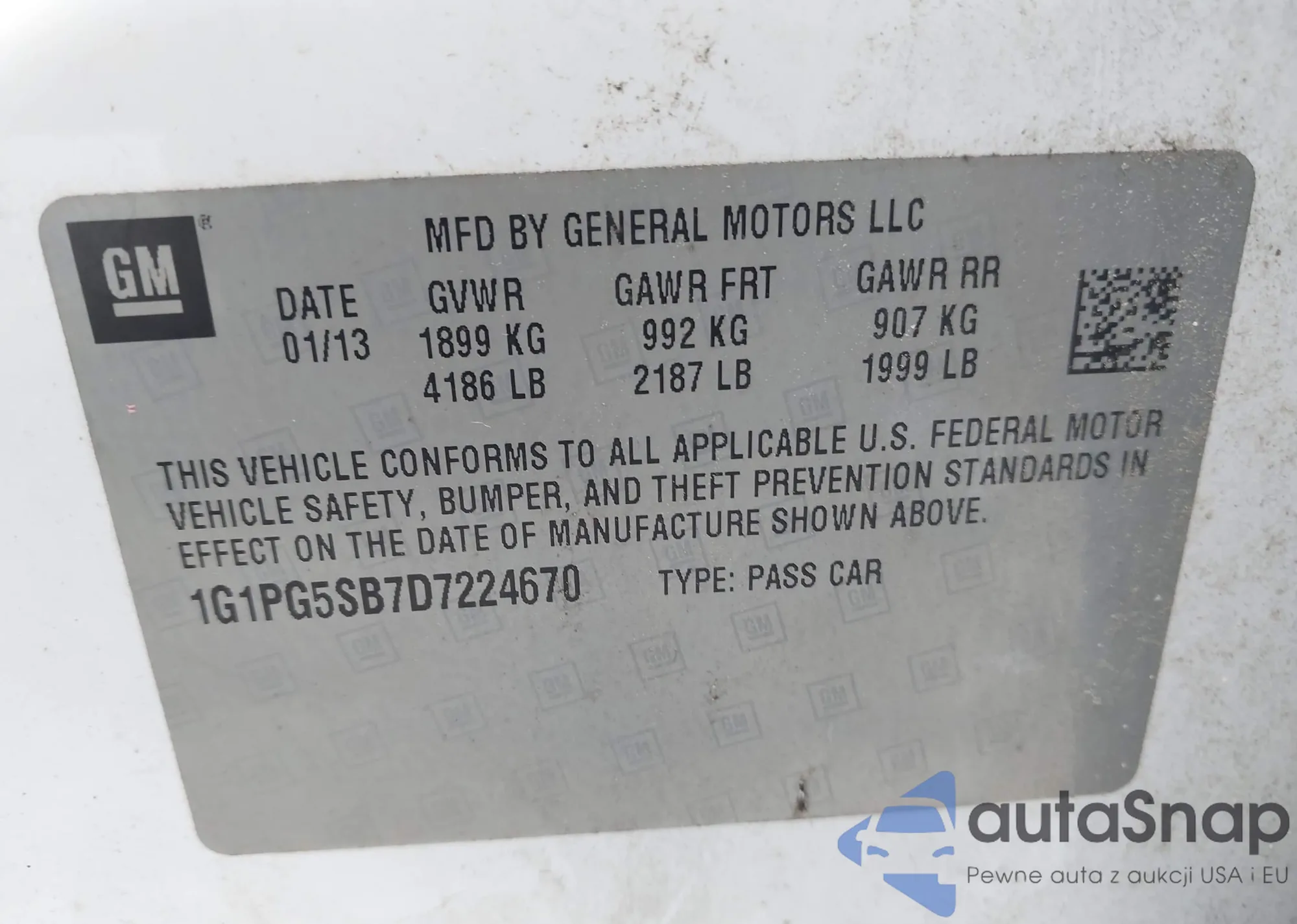 • VIN 1G1PG5SB7D7224670