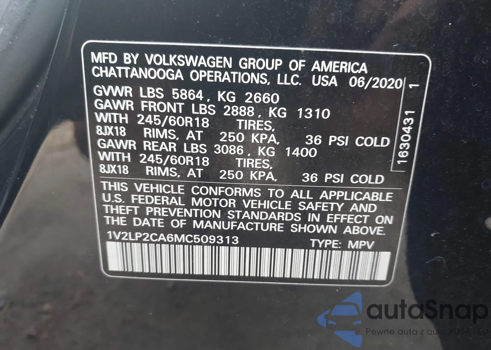 • VIN 1V2LP2CA6MC509313