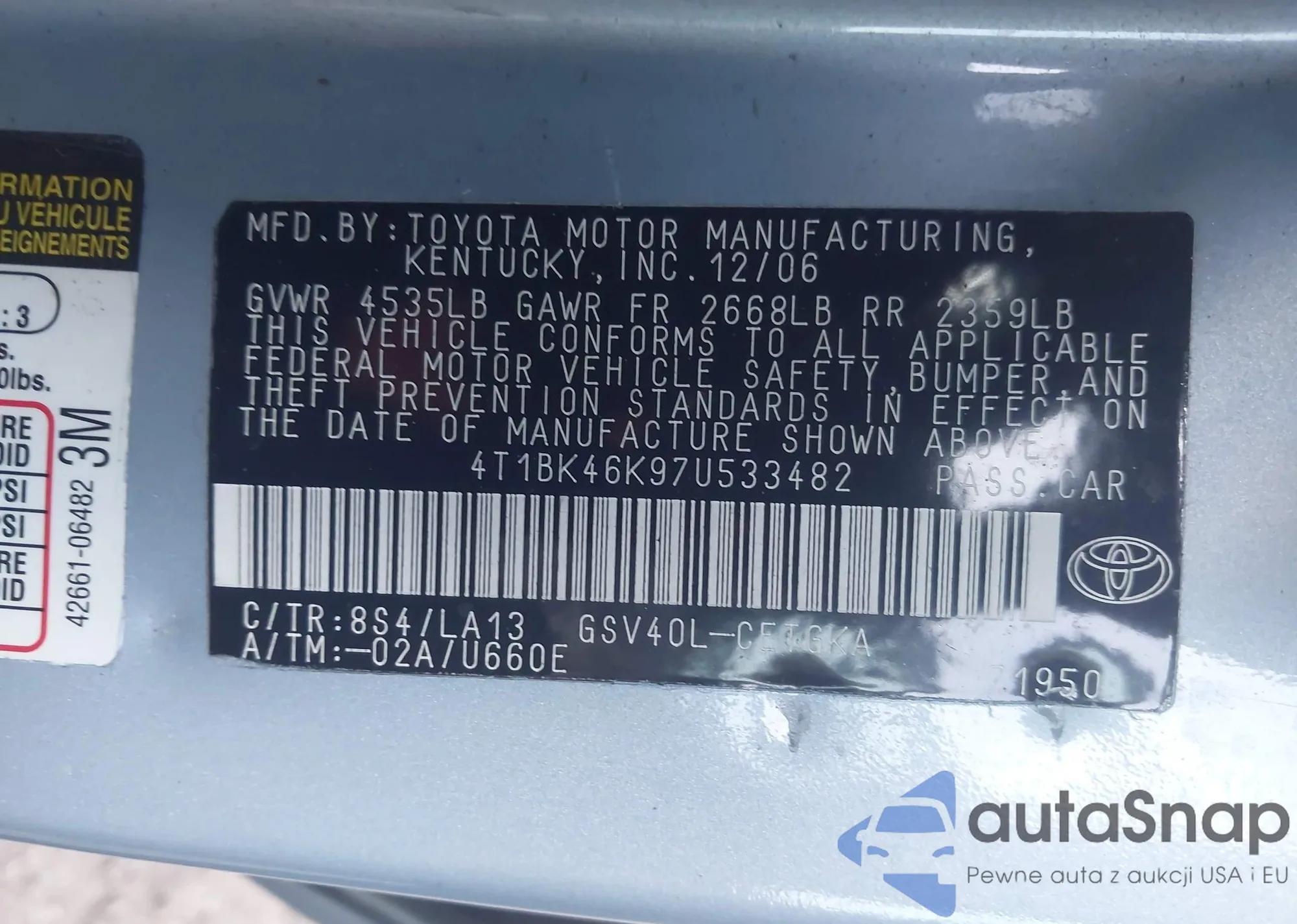 • VIN 4T1BK46K97U533482