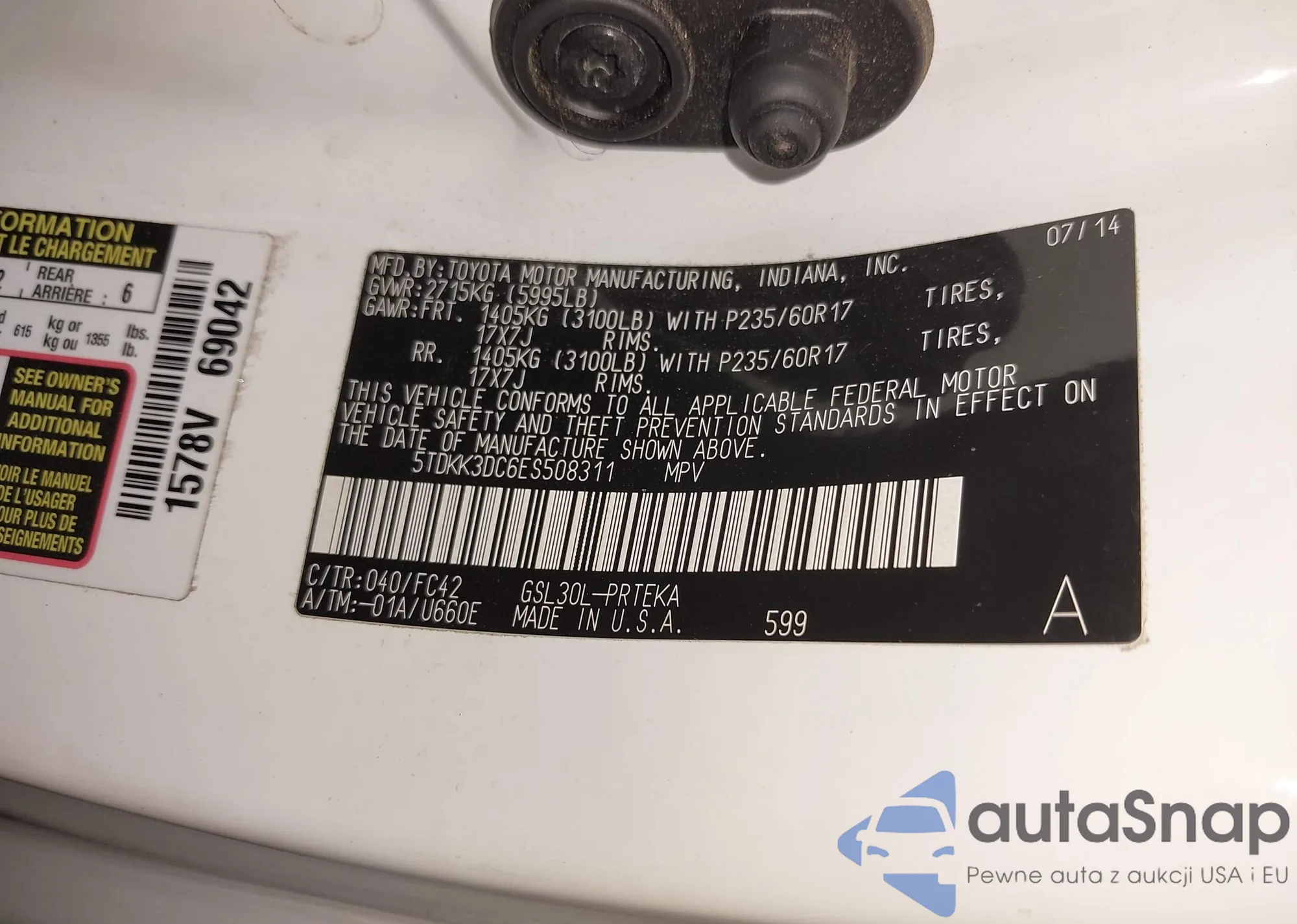 LOT: 43235557 VIN: 5TDKK3DC6ES508311