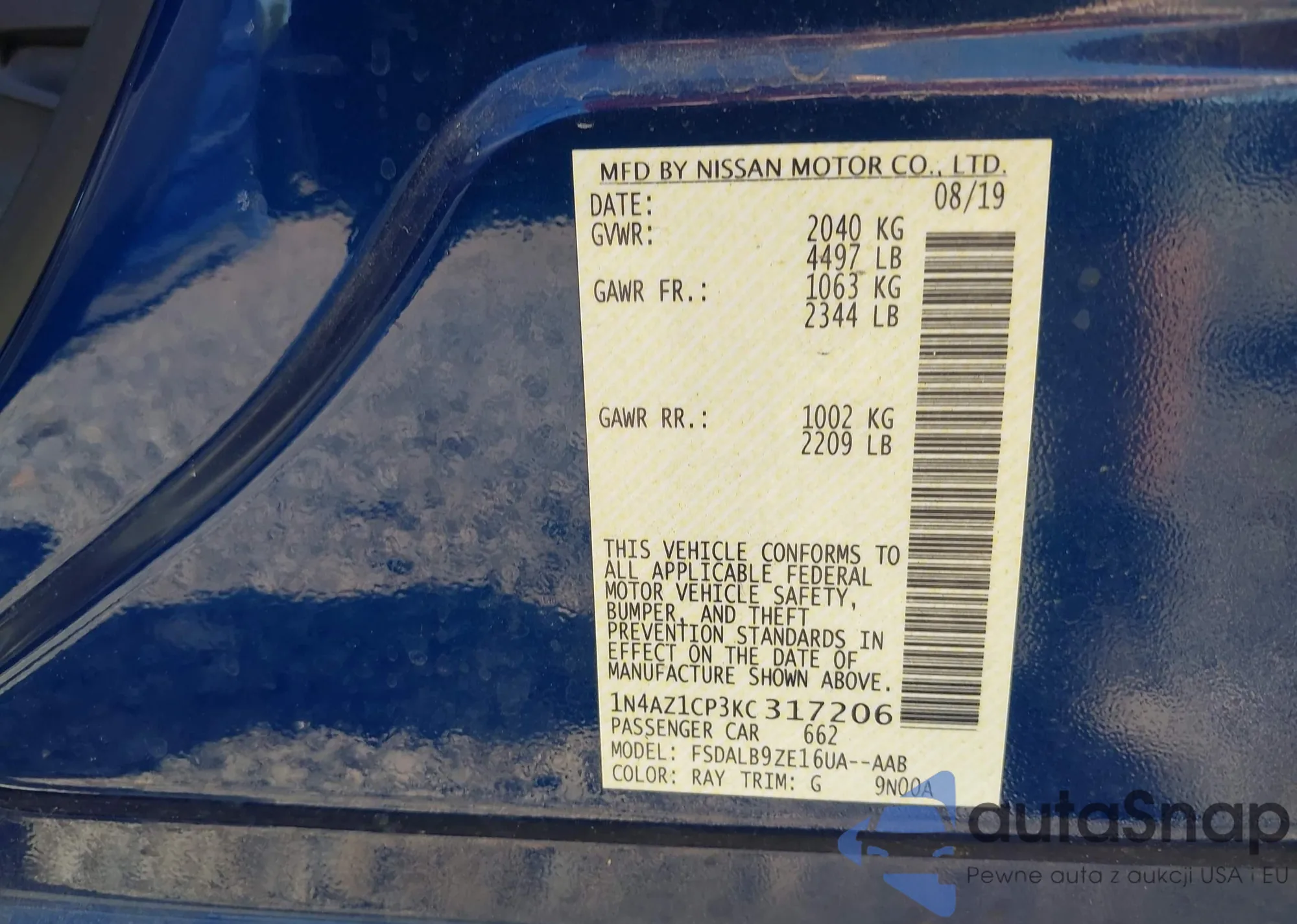 LOT: 43430728 VIN: 3N1CN7AP4HL869852