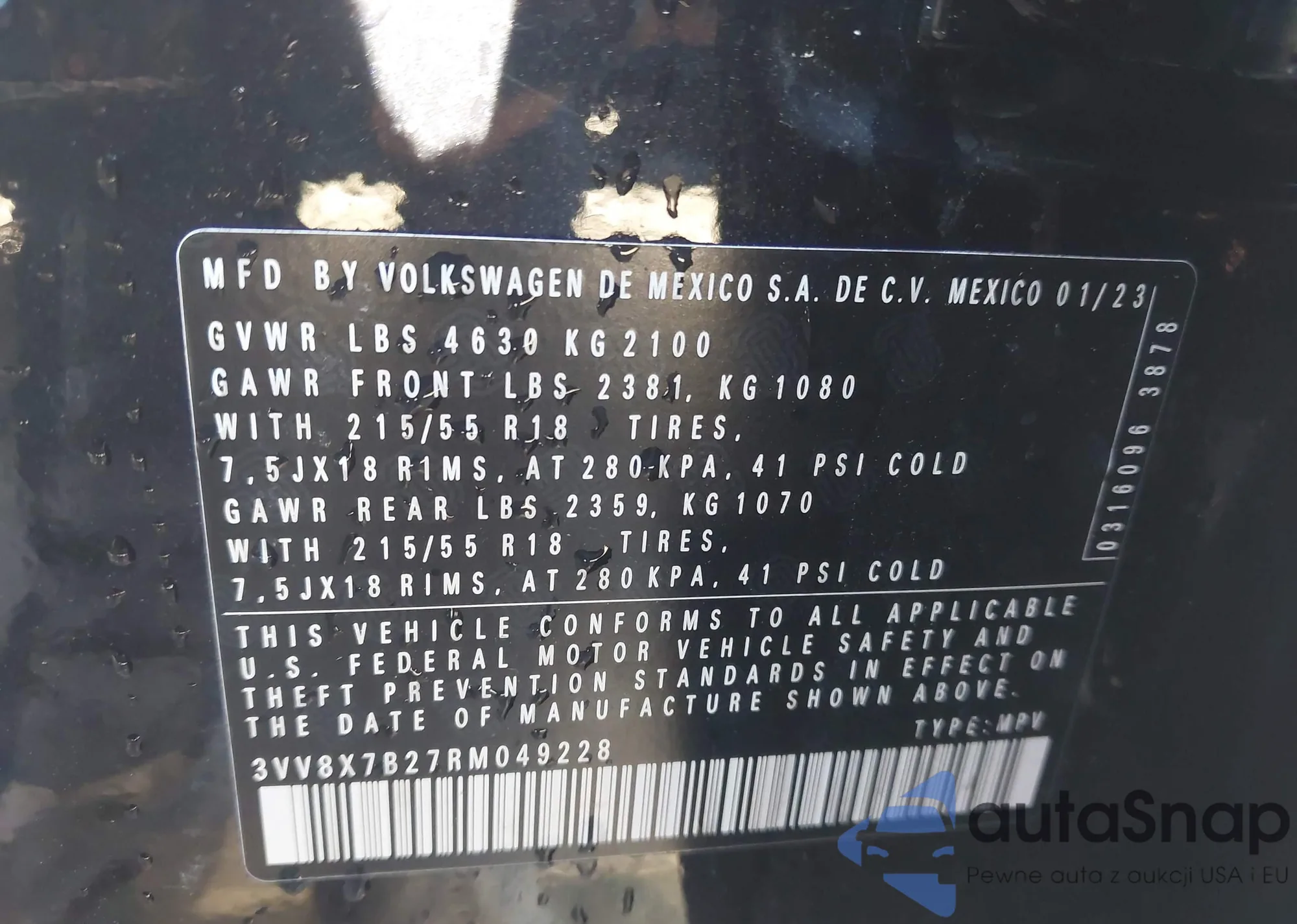 • VIN 3VV8X7B27RM049228