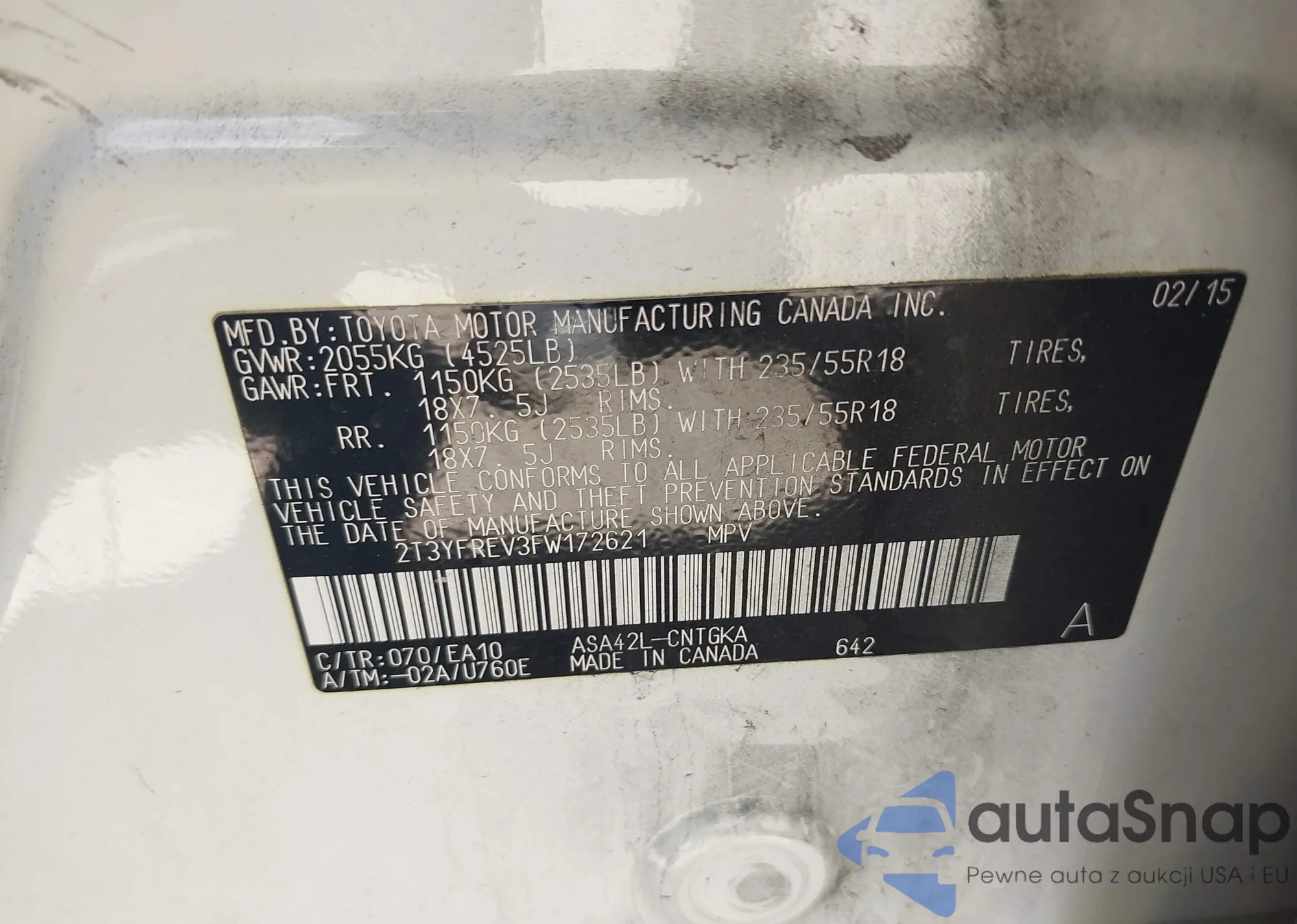 LOT: 42979430 VIN: 3TMAZ5CN8JM071010