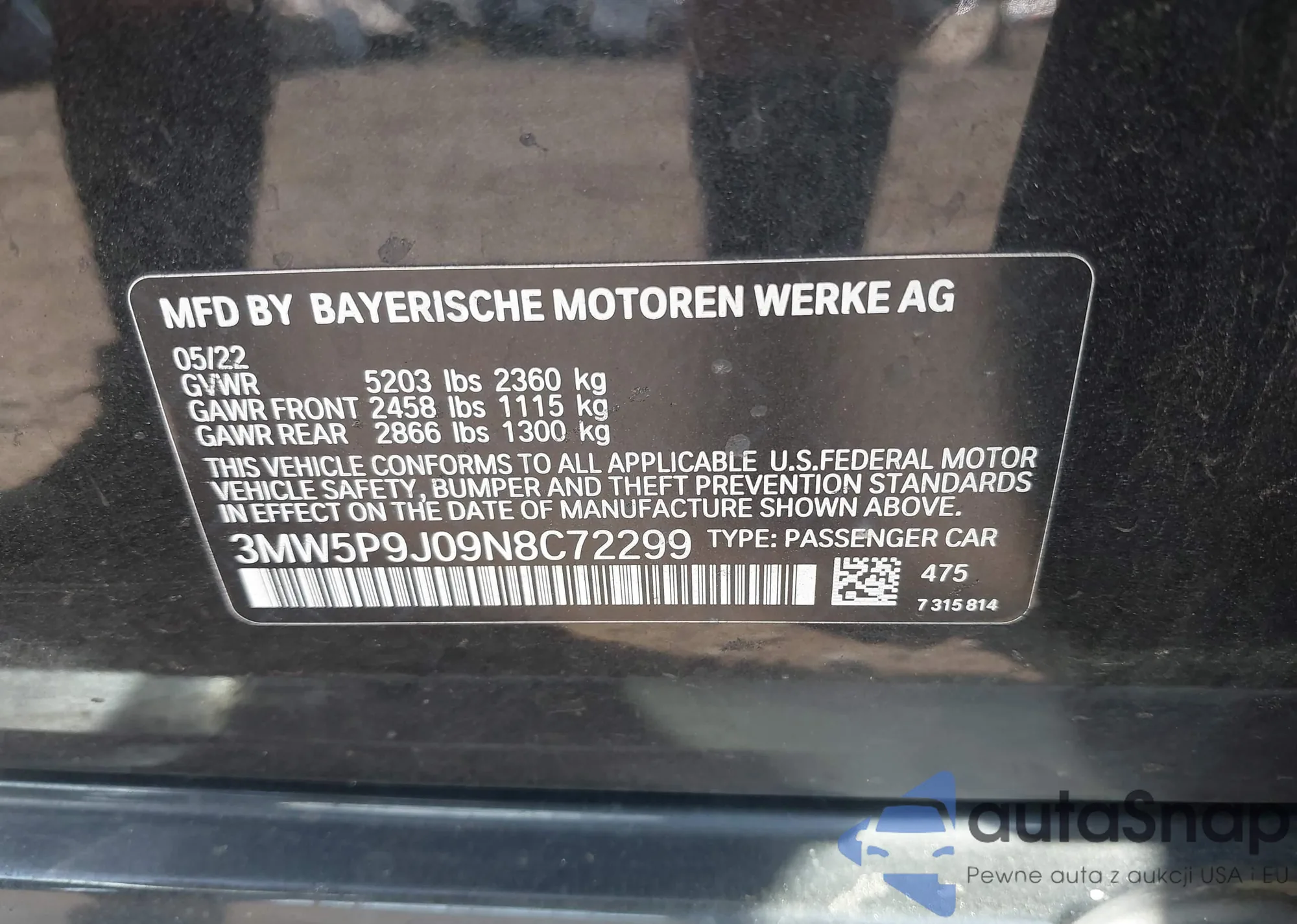 • VIN 3MW5P9J09N8C72299