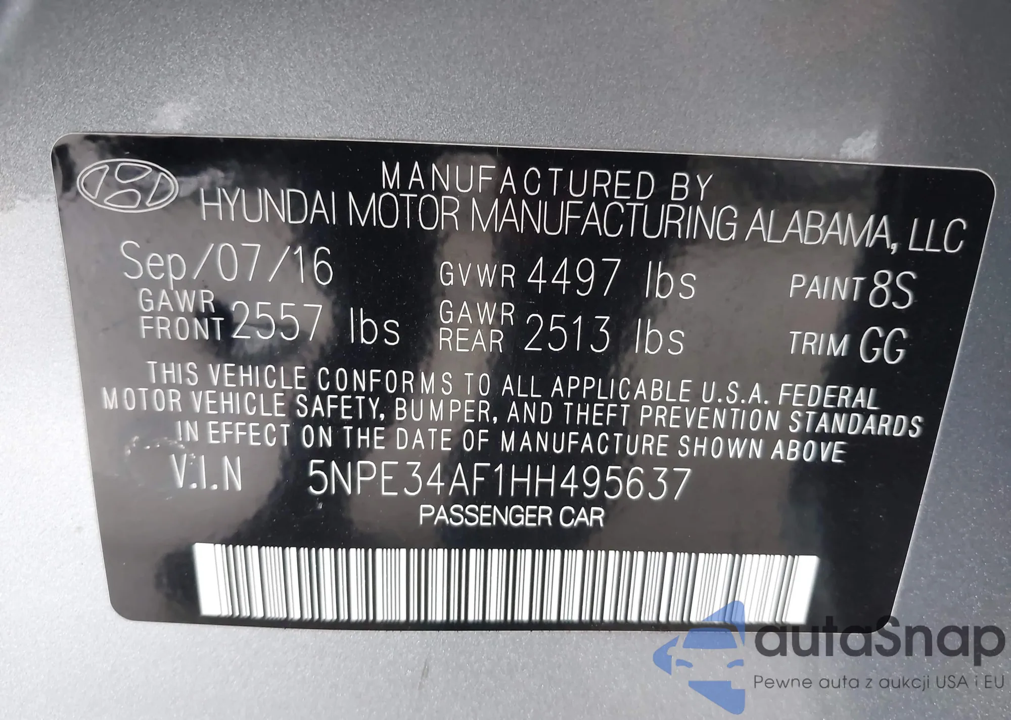 • VIN 5NPE34AF1HH495637