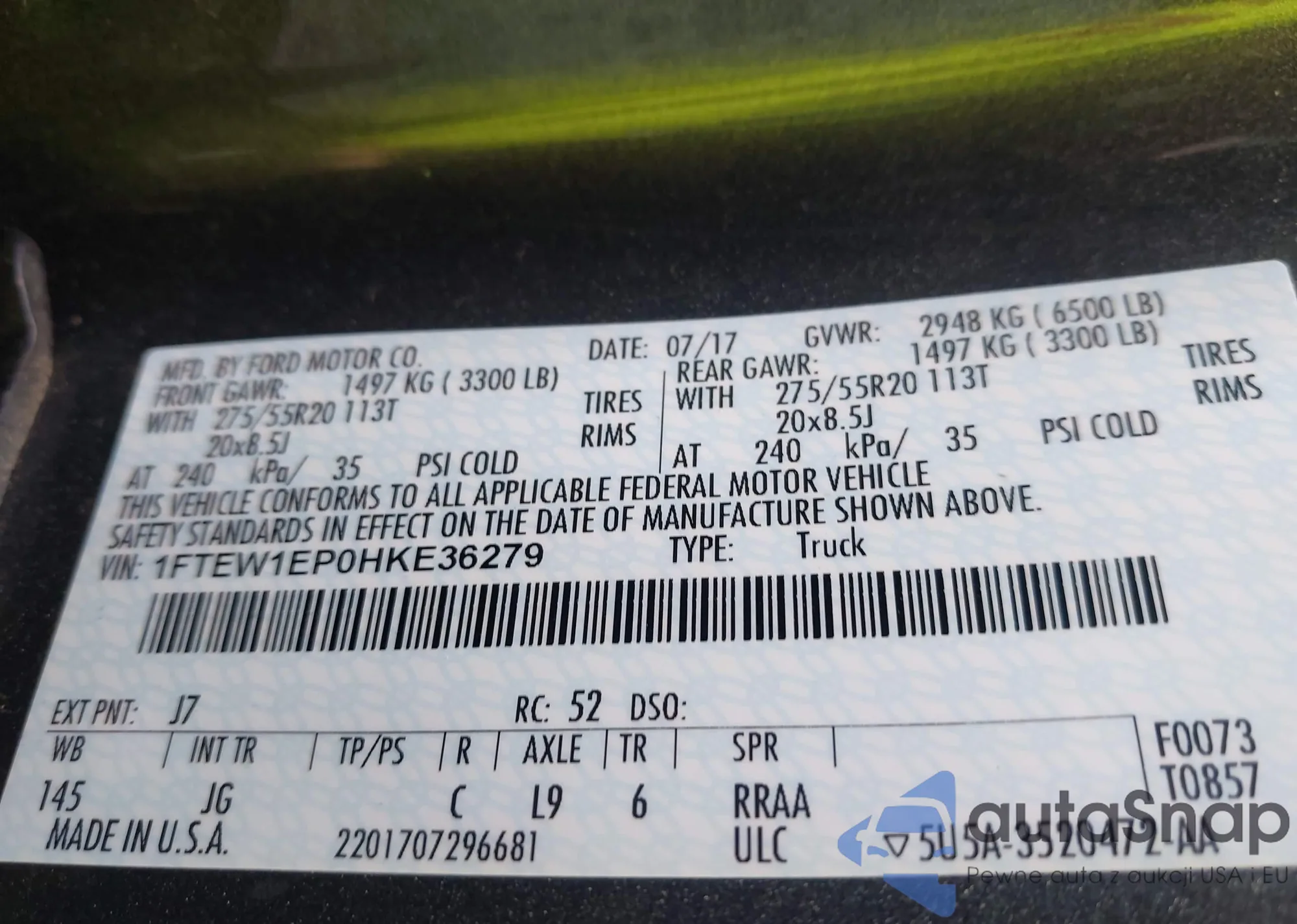 LOT: 42989540 VIN: 1FTEW1EP0HKE36279