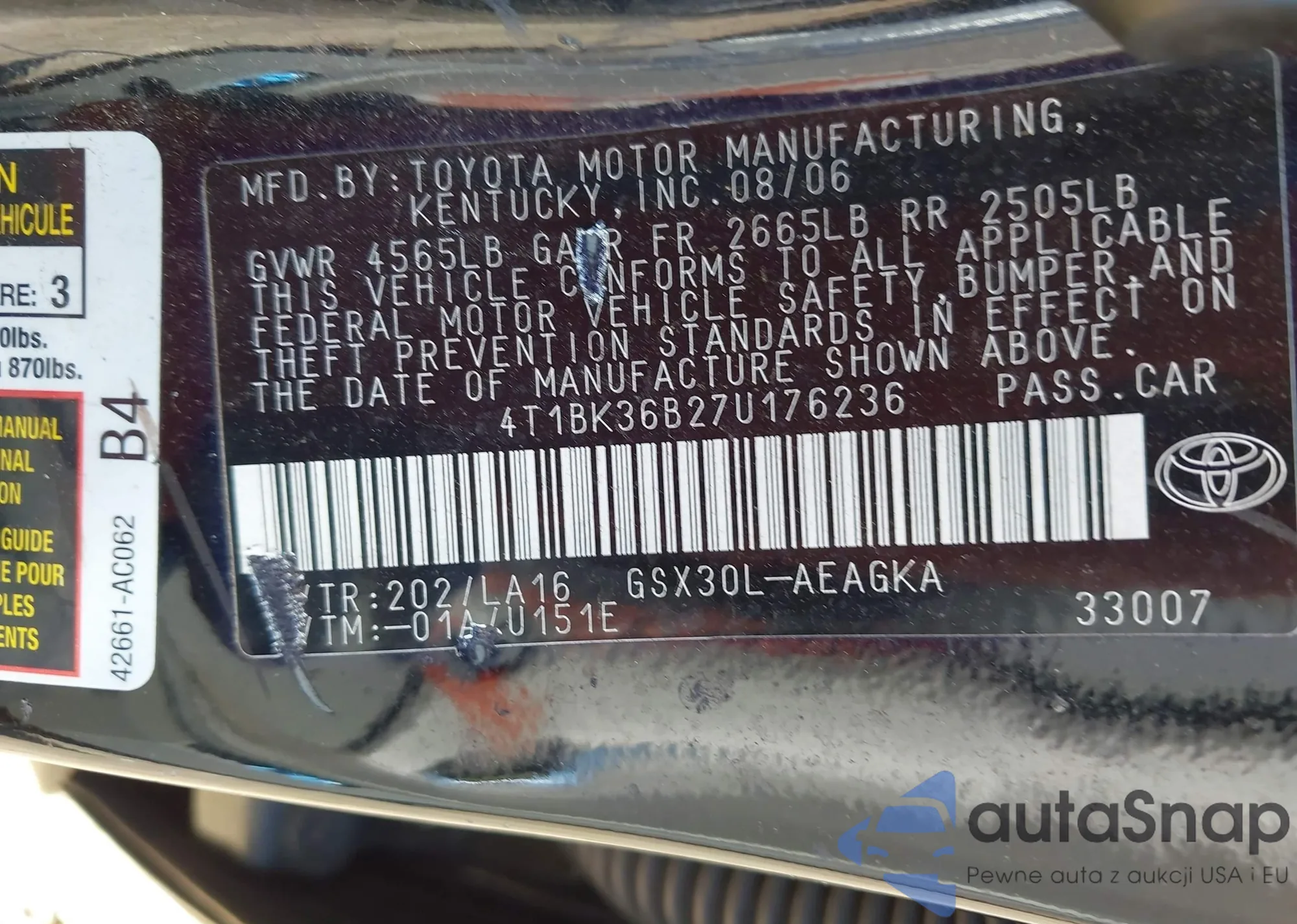 LOT: 43449146 VIN: 4T1BK36B27U176236