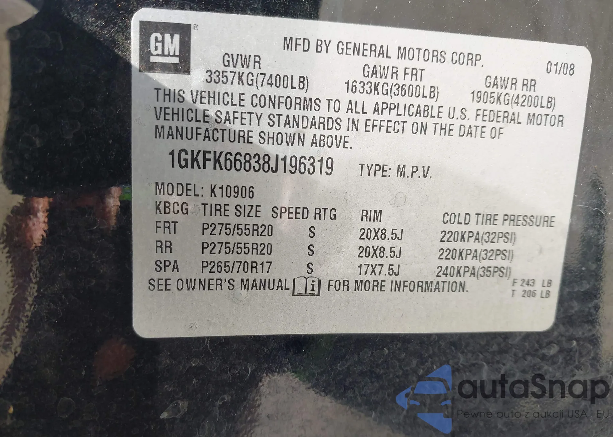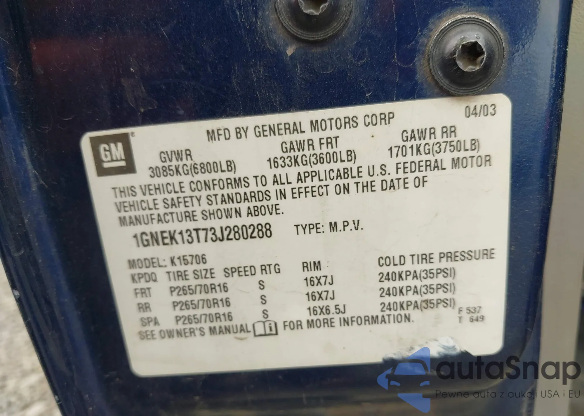 LOT: 43472261 VIN: 3GNDA23D37S516405