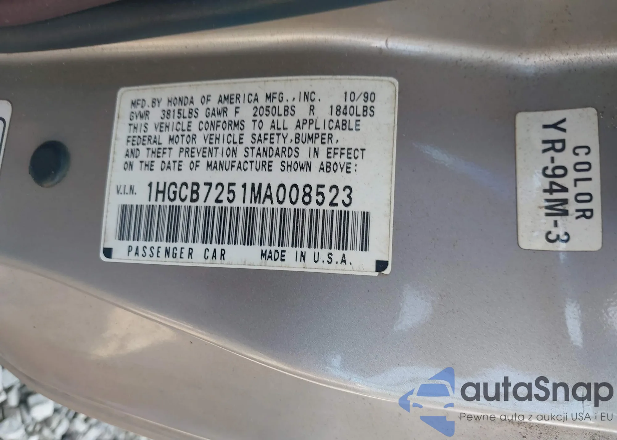LOT: 43145223 VIN: 1HGCB7251MA008523