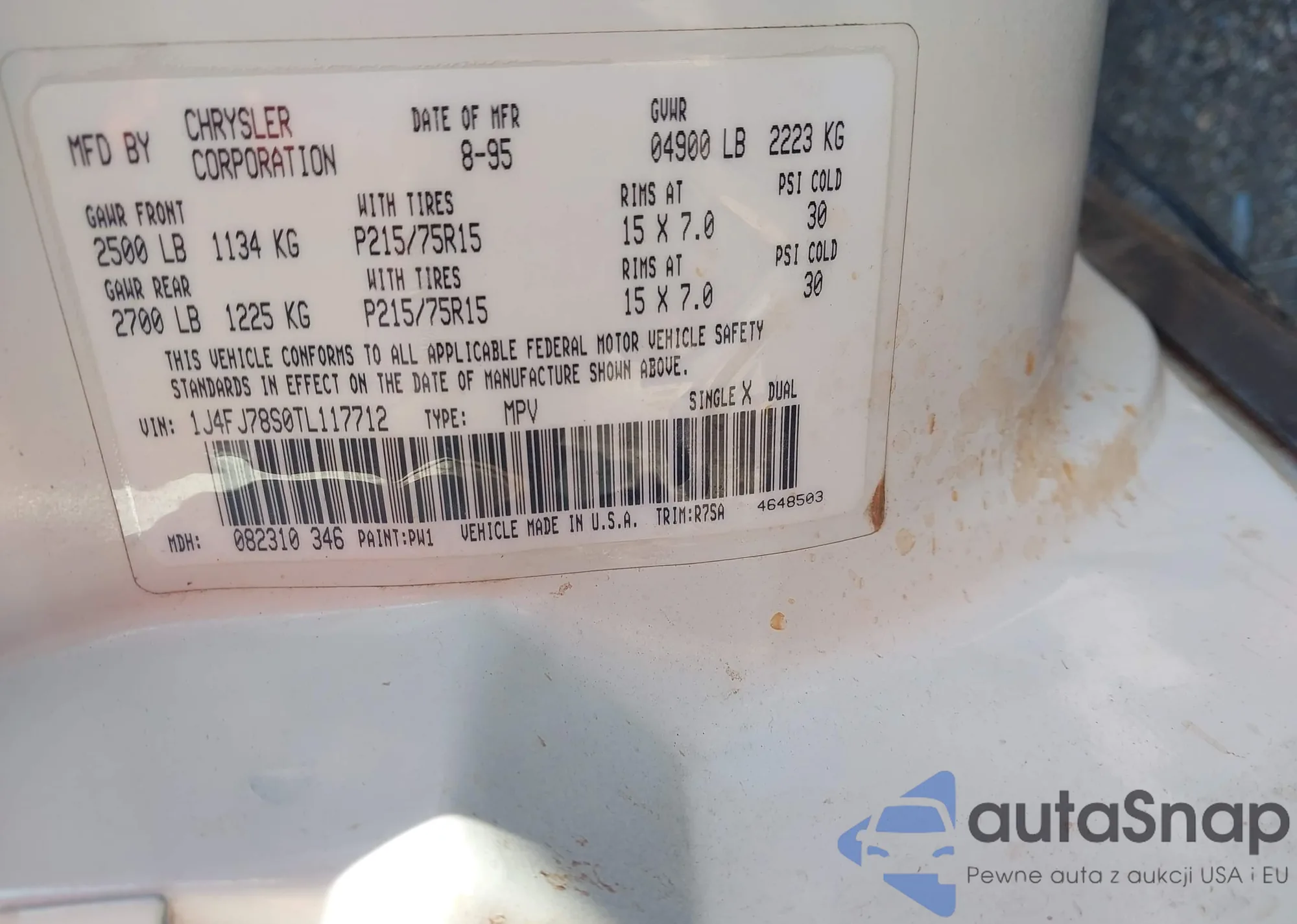 • VIN 1J4FJ78S0TL117712