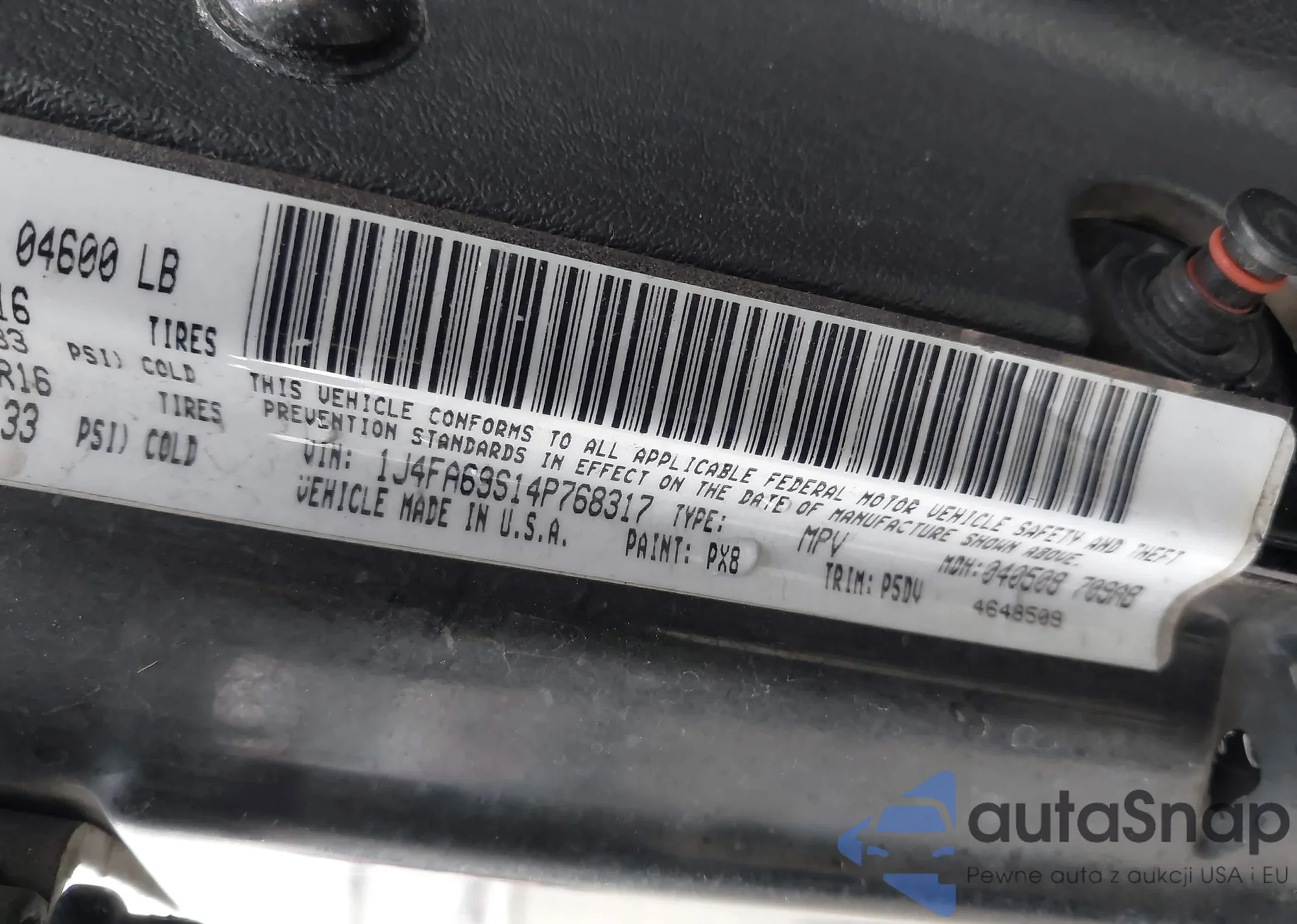 • VIN 1J4FA69S14P768317