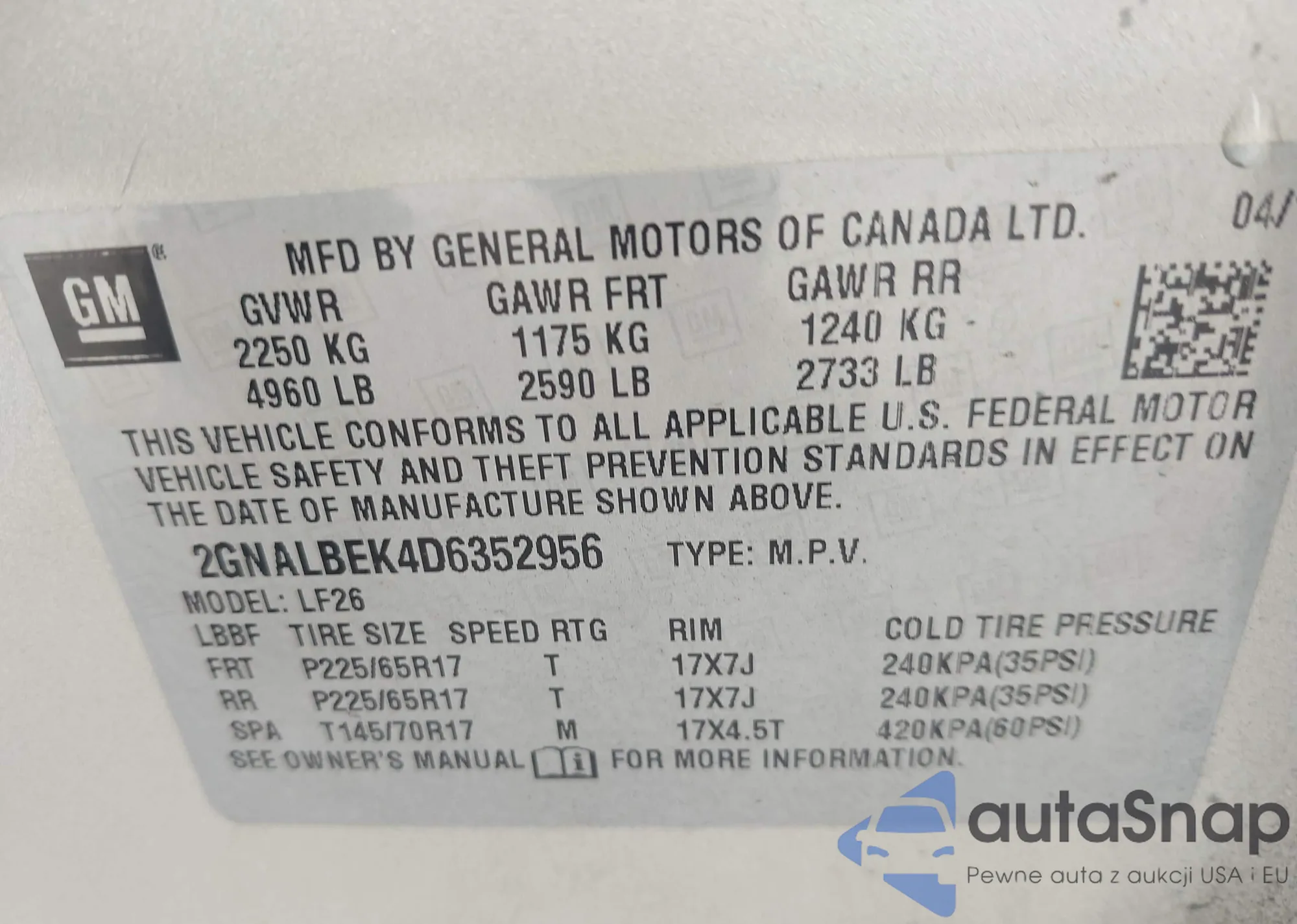 • VIN 2GNALBEK4D6352956