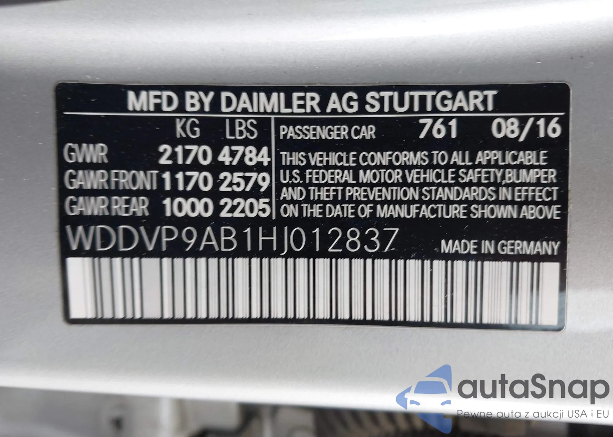 LOT: 43328973 VIN: WDDVP9AB1HJ012837