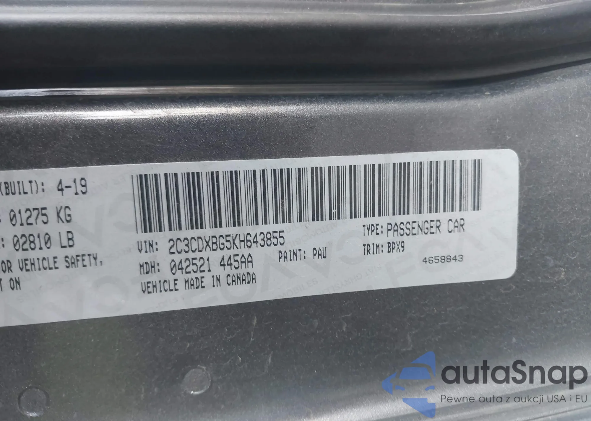 • VIN 2C3CDXBG5KH643855