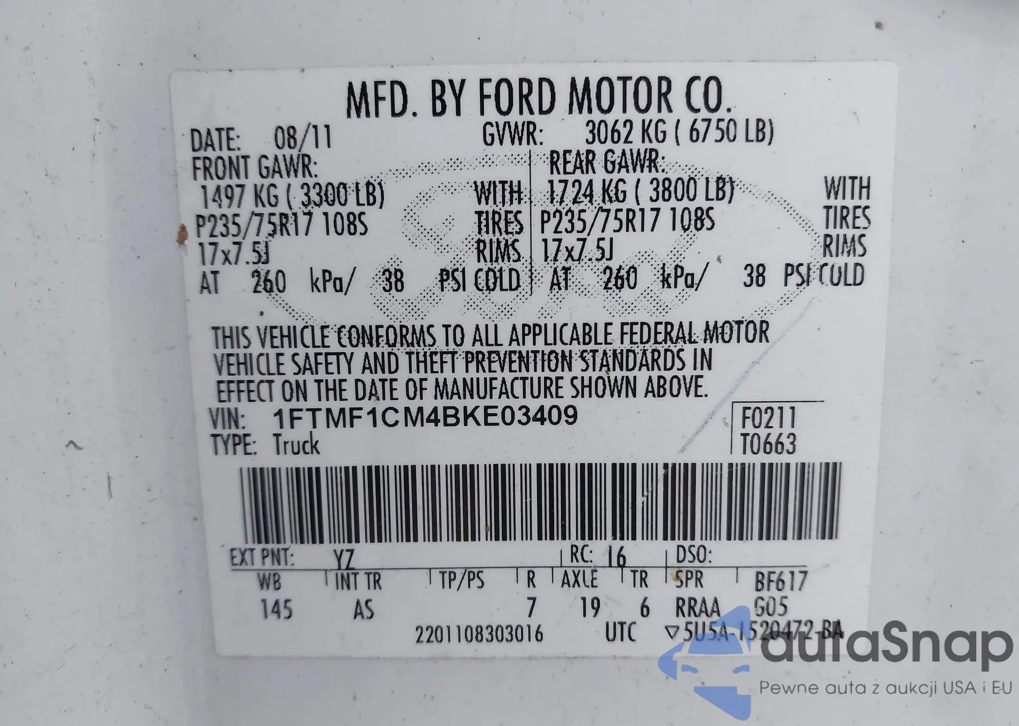 • VIN 1FTMF1CM4BKE03409