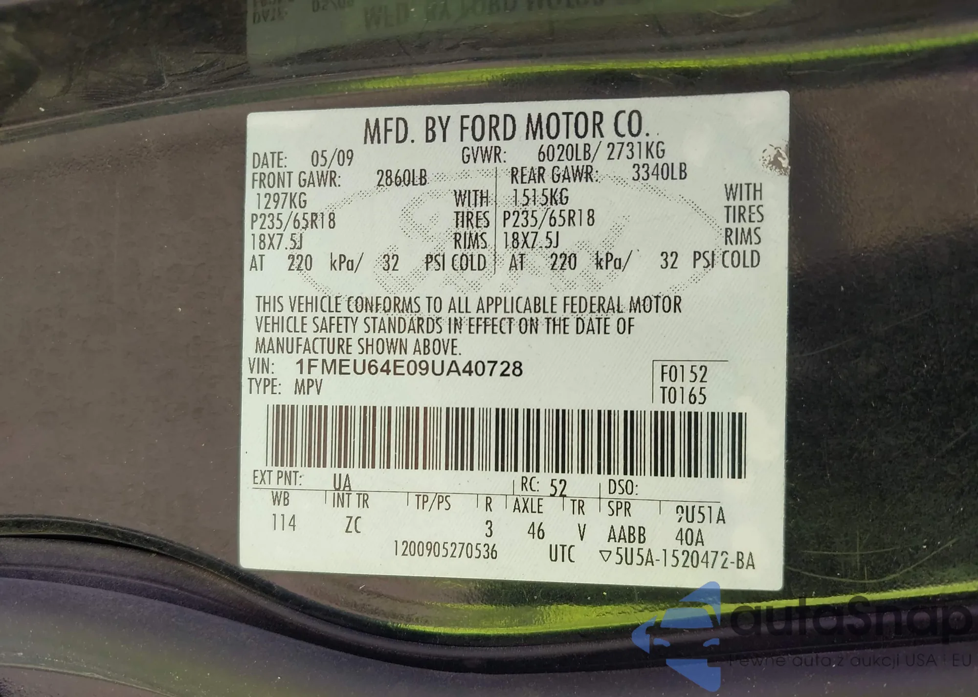 LOT: 43413256 VIN: 2FABP7BV9AX118966