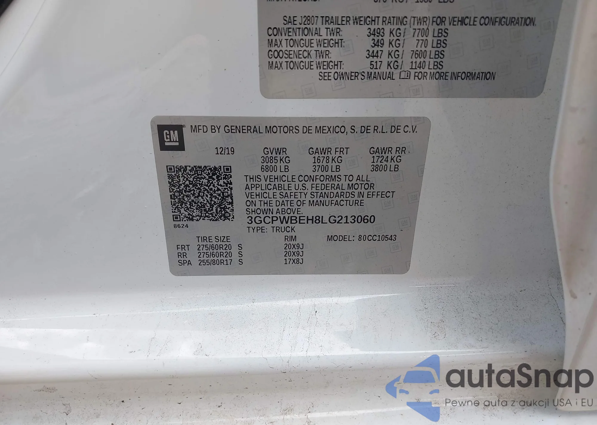 • VIN 3GCPWBEH8LG213060