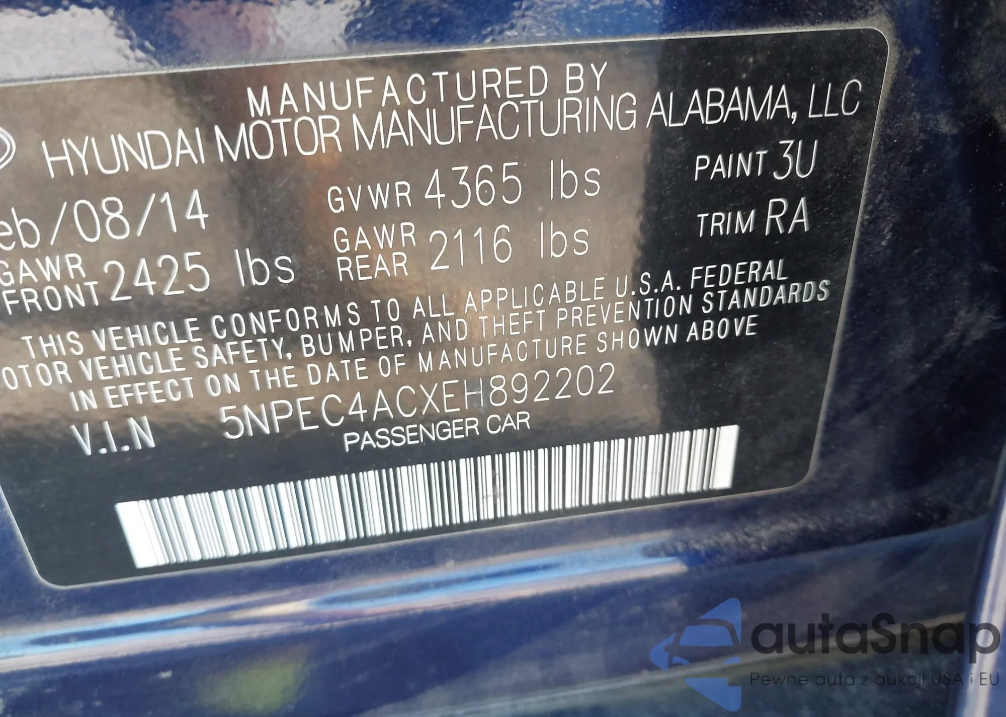• VIN 5NPEC4ACXEH892202
