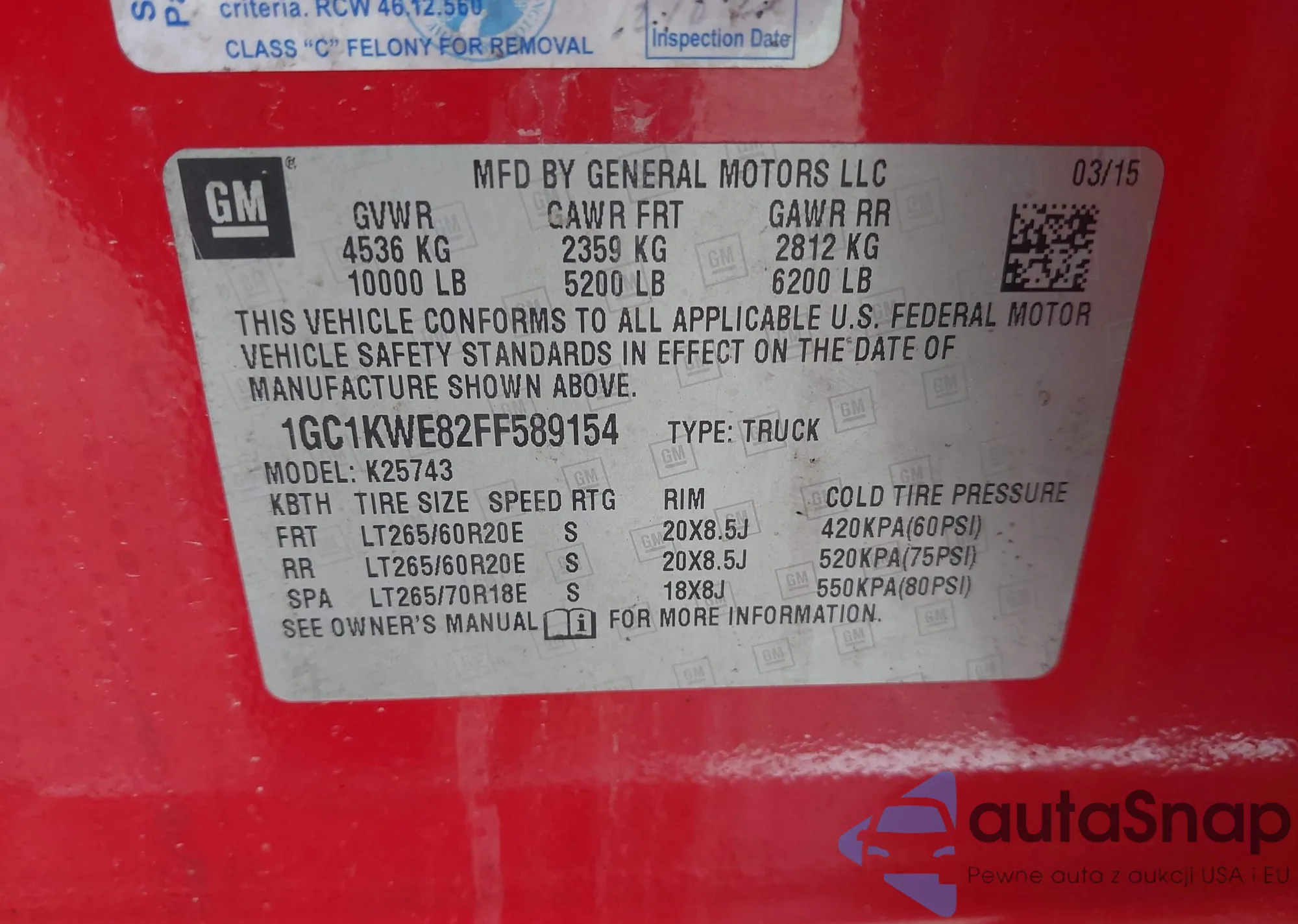 • VIN 1GC1KWE82FF589154