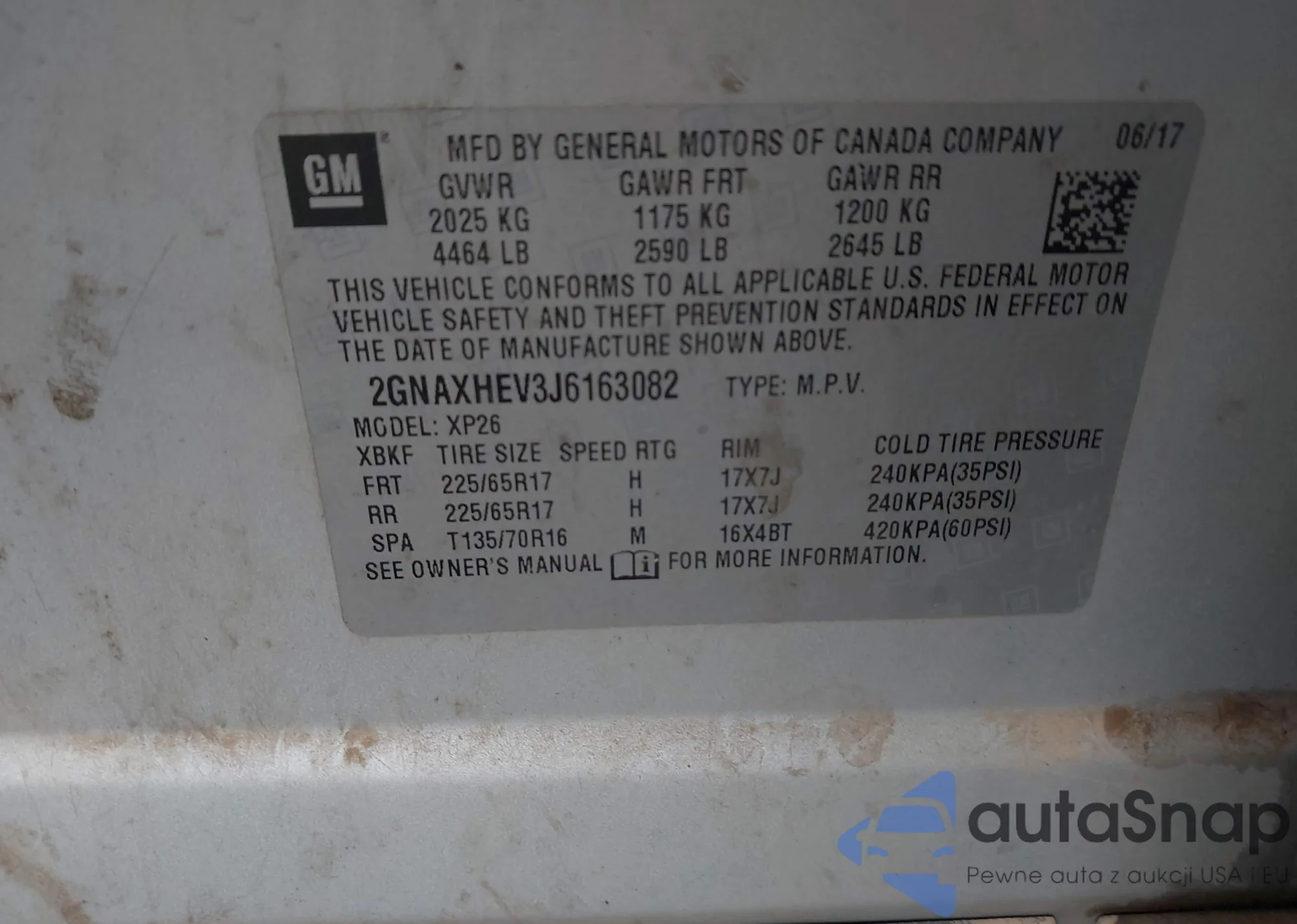 • VIN 2GNAXHEV3J6163082