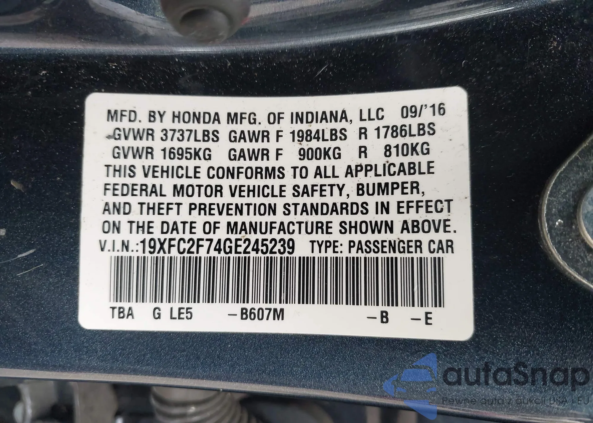 • VIN 19XFC2F74GE245239