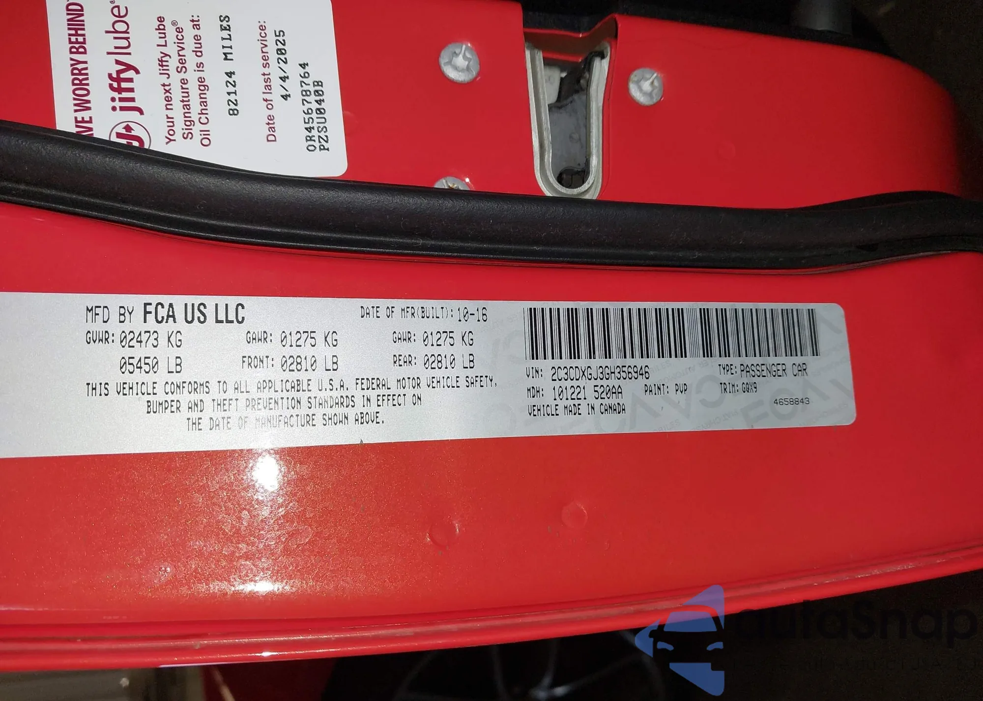 • VIN 2C3CDXGJ3GH356946