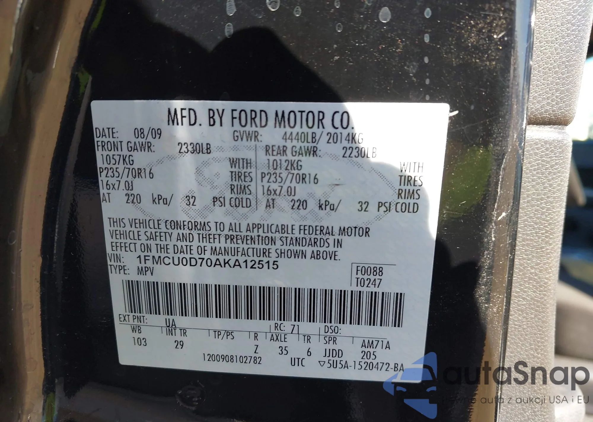 LOT: 43586136 VIN: 1FMCU0D70AKA12515