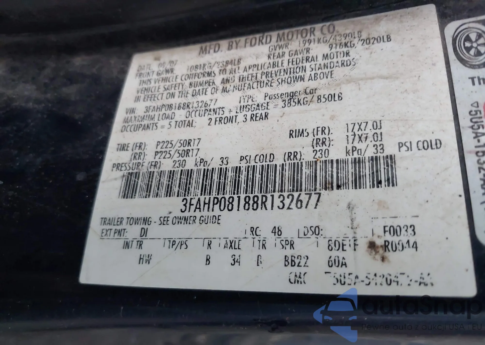 • VIN 3FAHP08188R132677