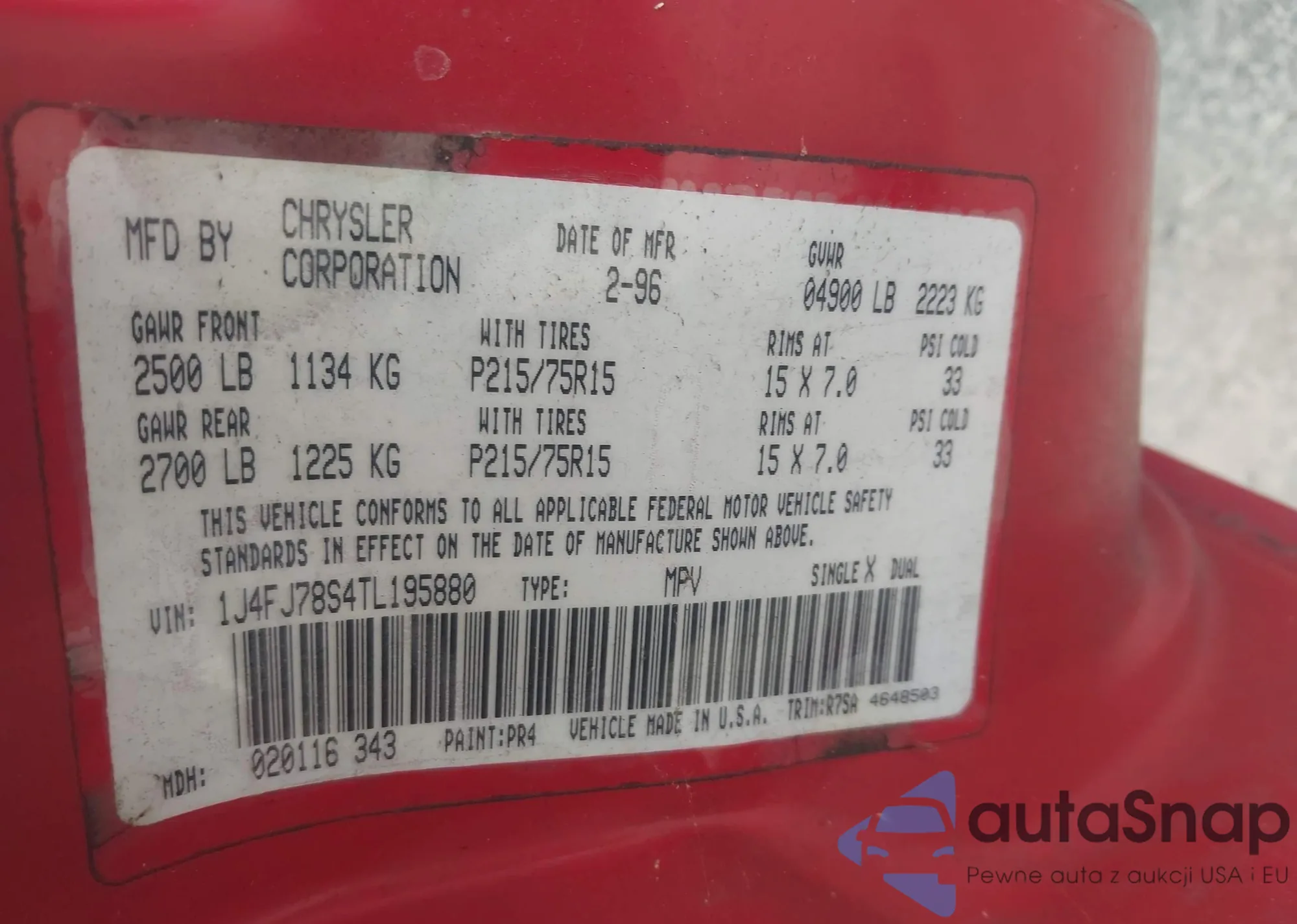 • VIN 1J4FJ78S4TL195880