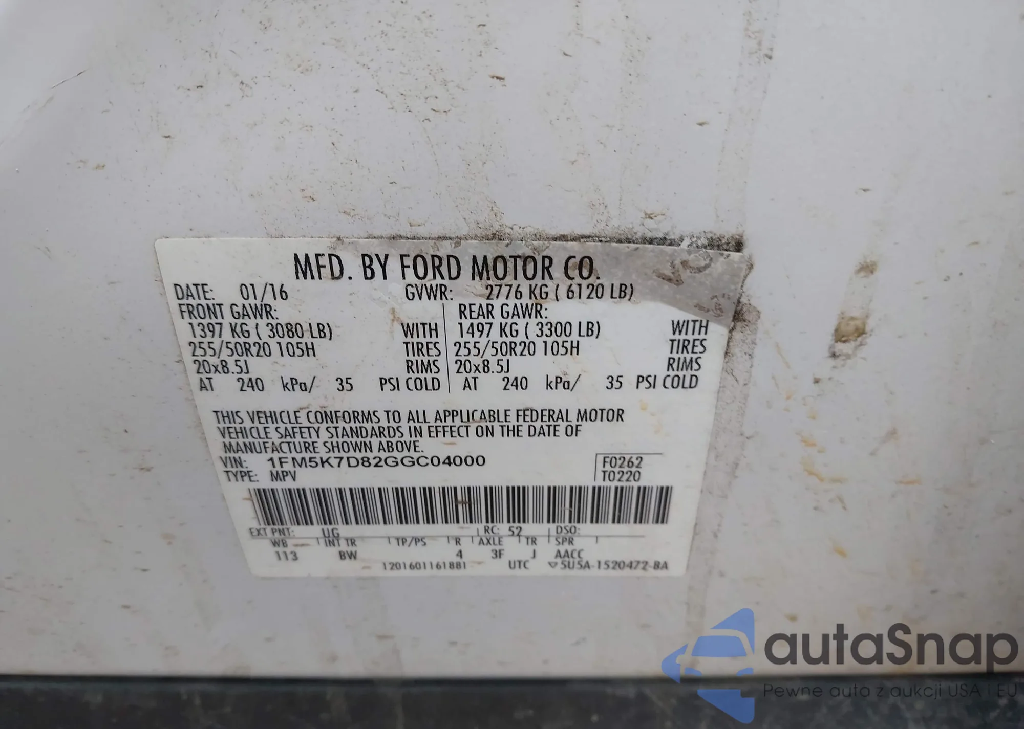 • VIN 1FM5K7D82GGC04000